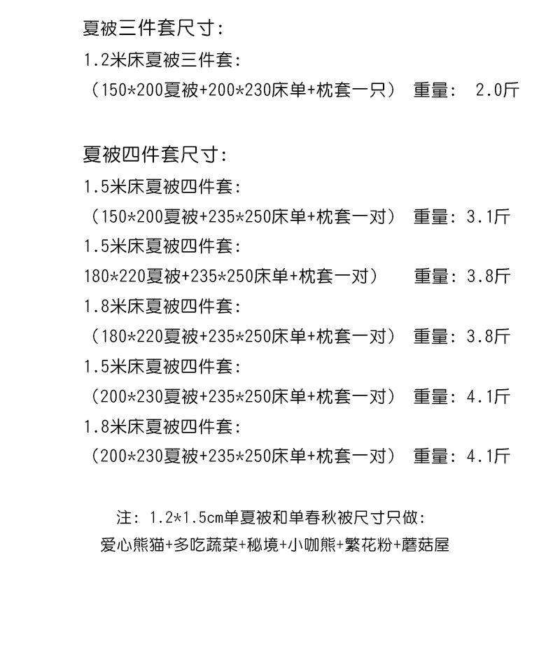 1.5夏被四件套-200*230夏被 | ¥65.00 |
