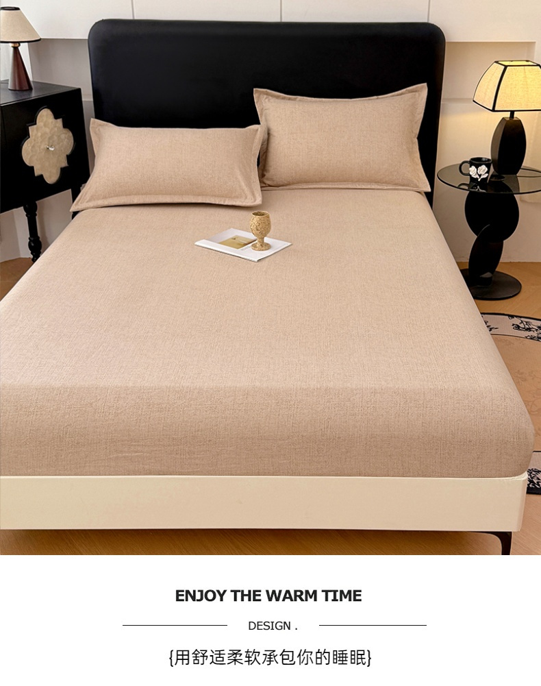 • 91家纺网 家纺一手货源 找家纺 梦舒羽 2025新款原麻床笠机洗家用防滑透气四季款床罩床垫床单保护套 暖卡其