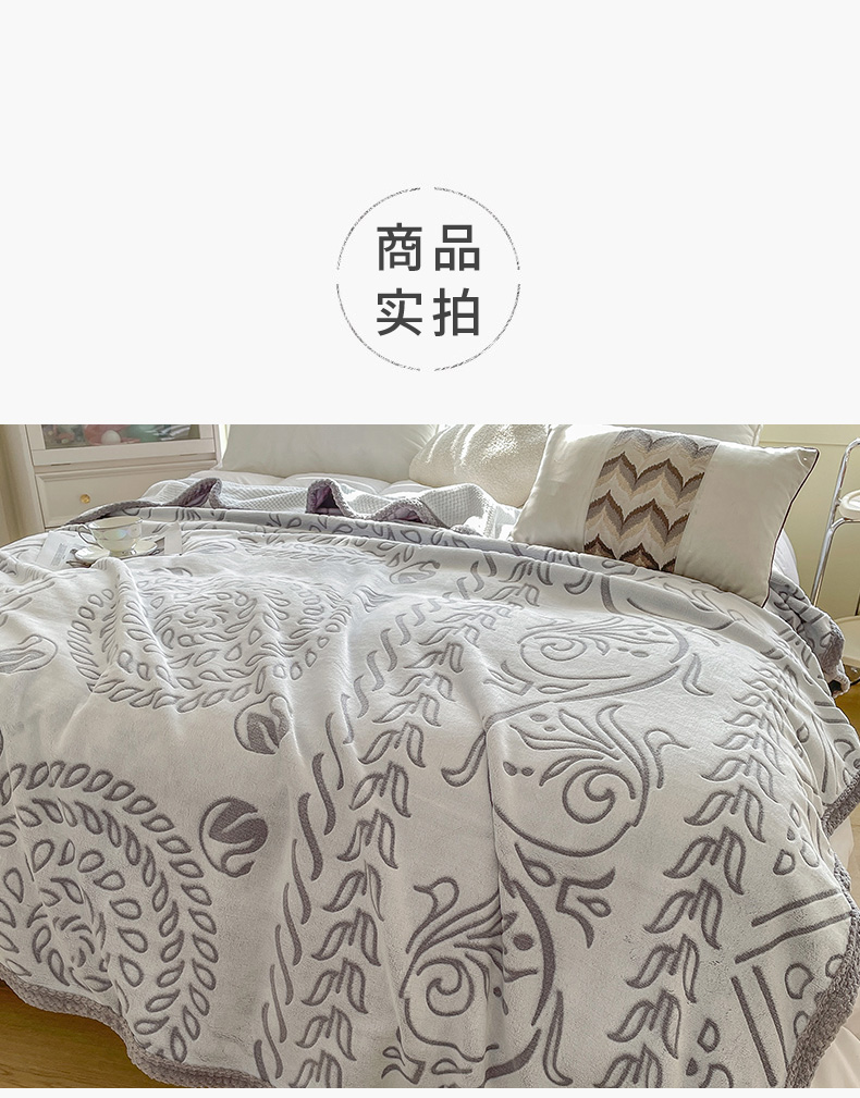 商品名称:梵克保罗 2025新款背印剪花牛奶绒菠萝格复合毛毯 黑色
