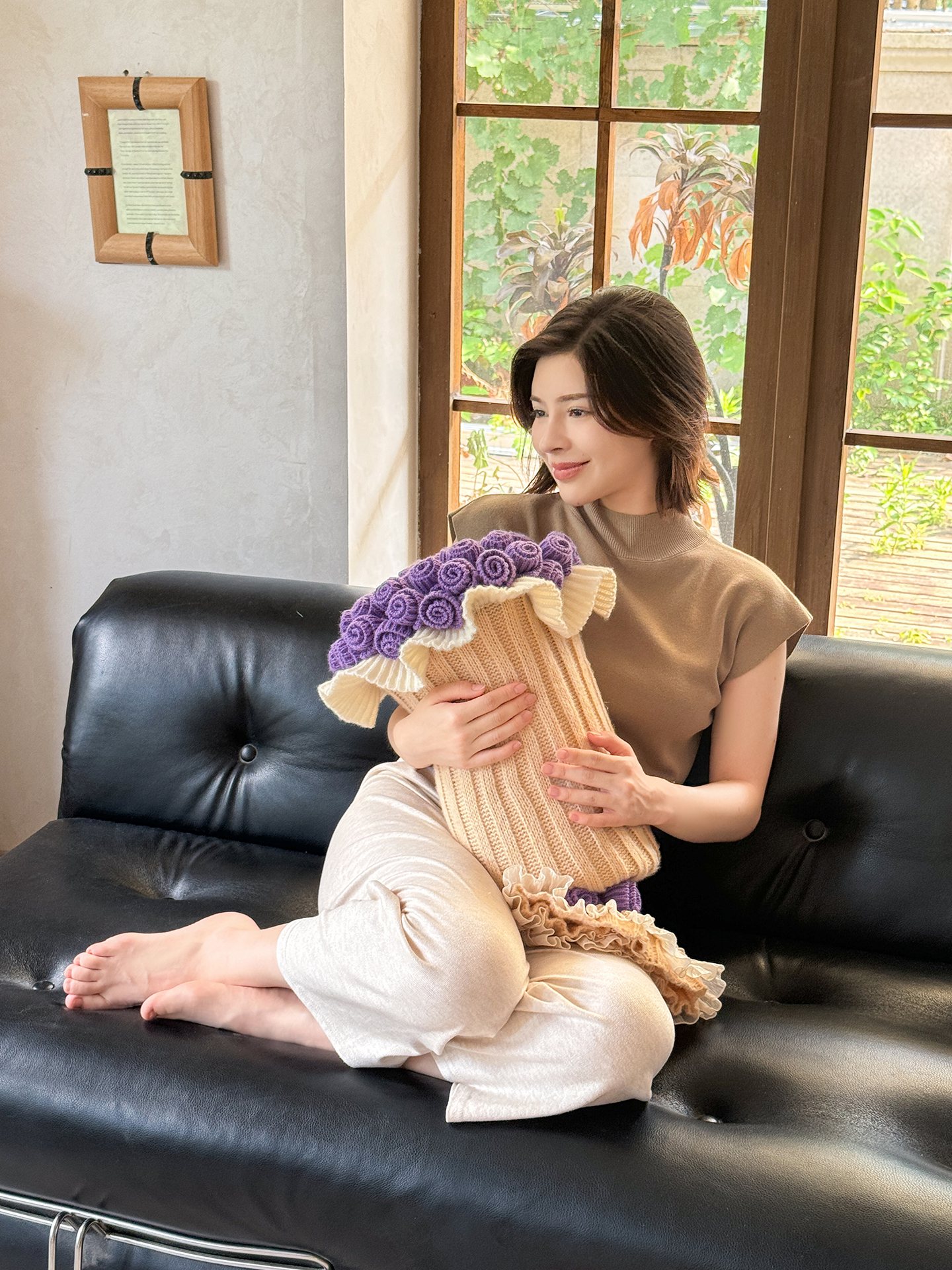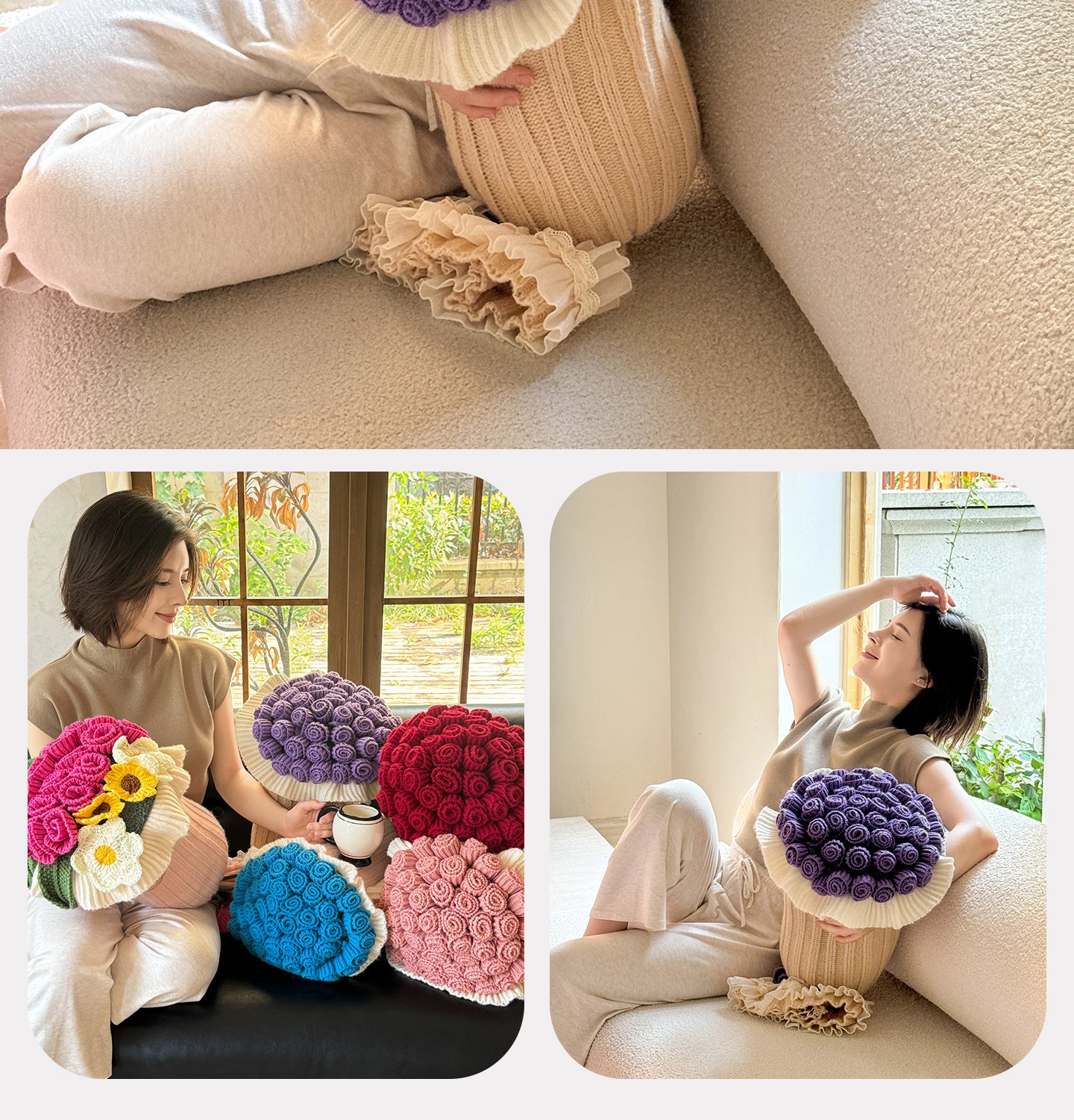 梵克保罗 2025新款网红直播热款多功能玫瑰花束抱枕卧室沙发靠枕半边绒针织礼品毯毛毯 星穹紫