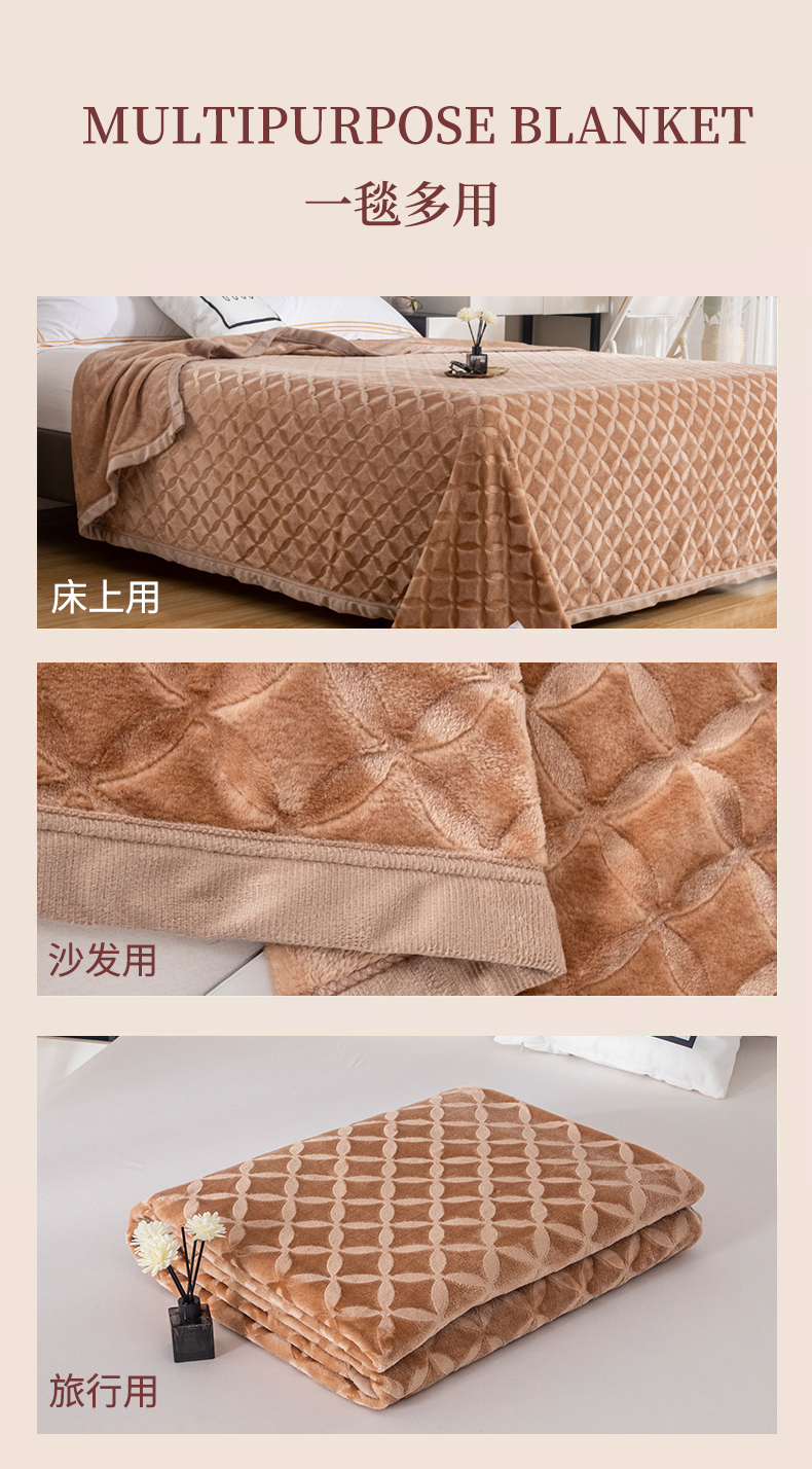 商品名称:梵克保罗 2025新款3D立体印花四季盖毯400克 3D豆沙