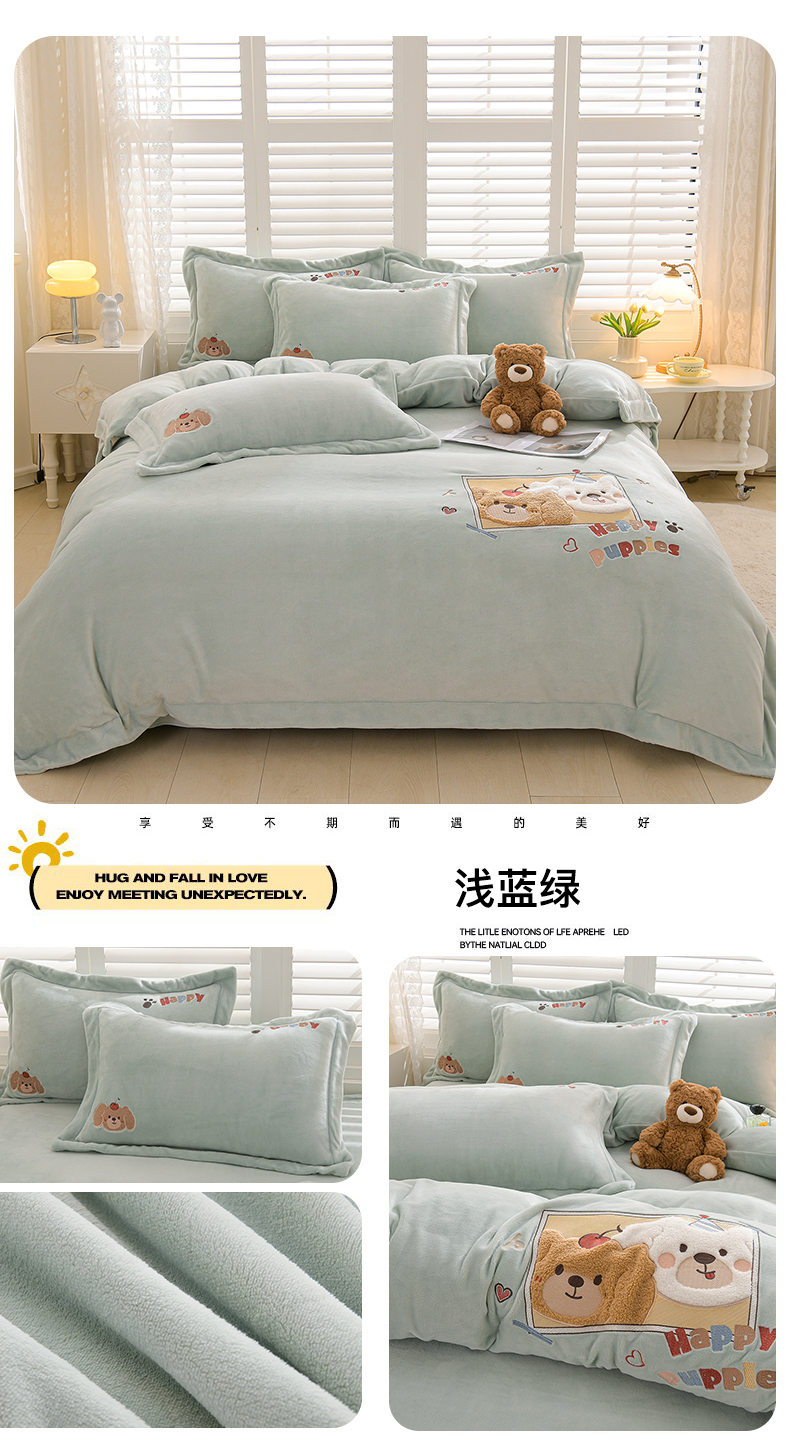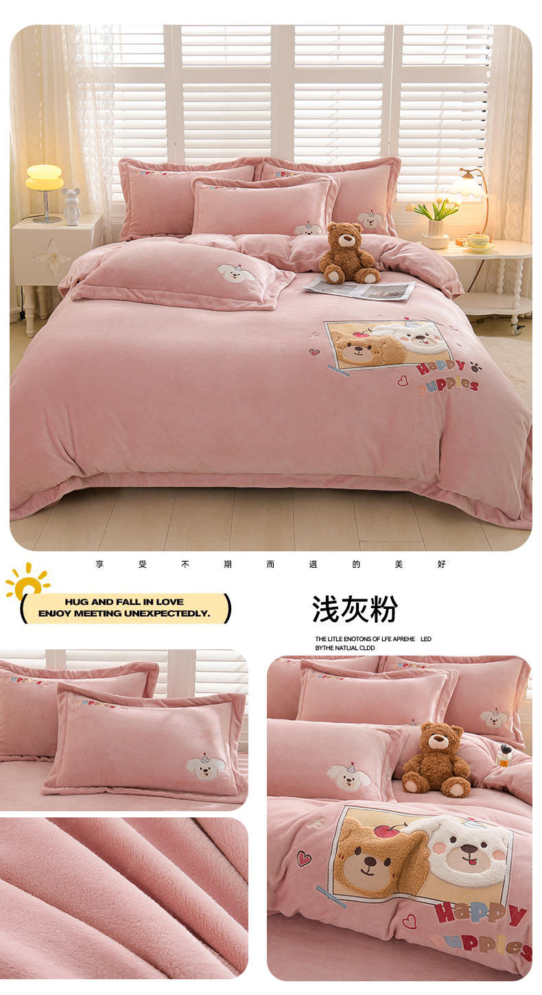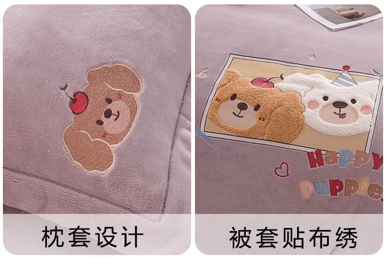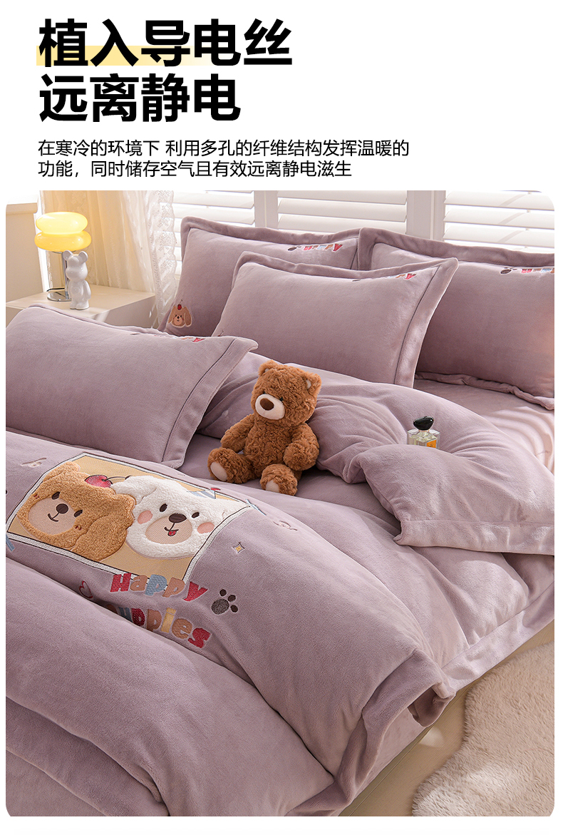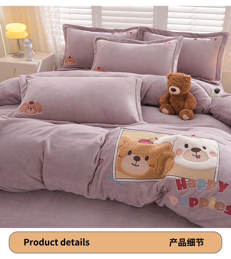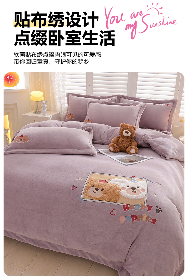 当前位置: 91家纺网 > 商品网购 > 床品套件 > 四件套 > 牛奶绒四件套 > 金昱纺 2025新款230克柔软高克重牛奶绒贴布绣四件套 可爱联盟-浅紫