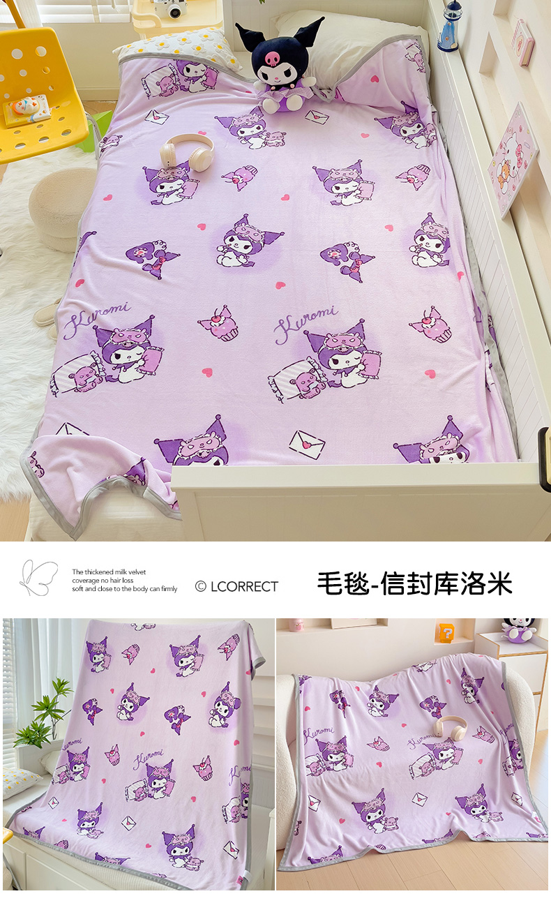 商品名称:港岛妹妹 2025新款三丽鸥牛奶绒毛毯毯子 波点库洛米