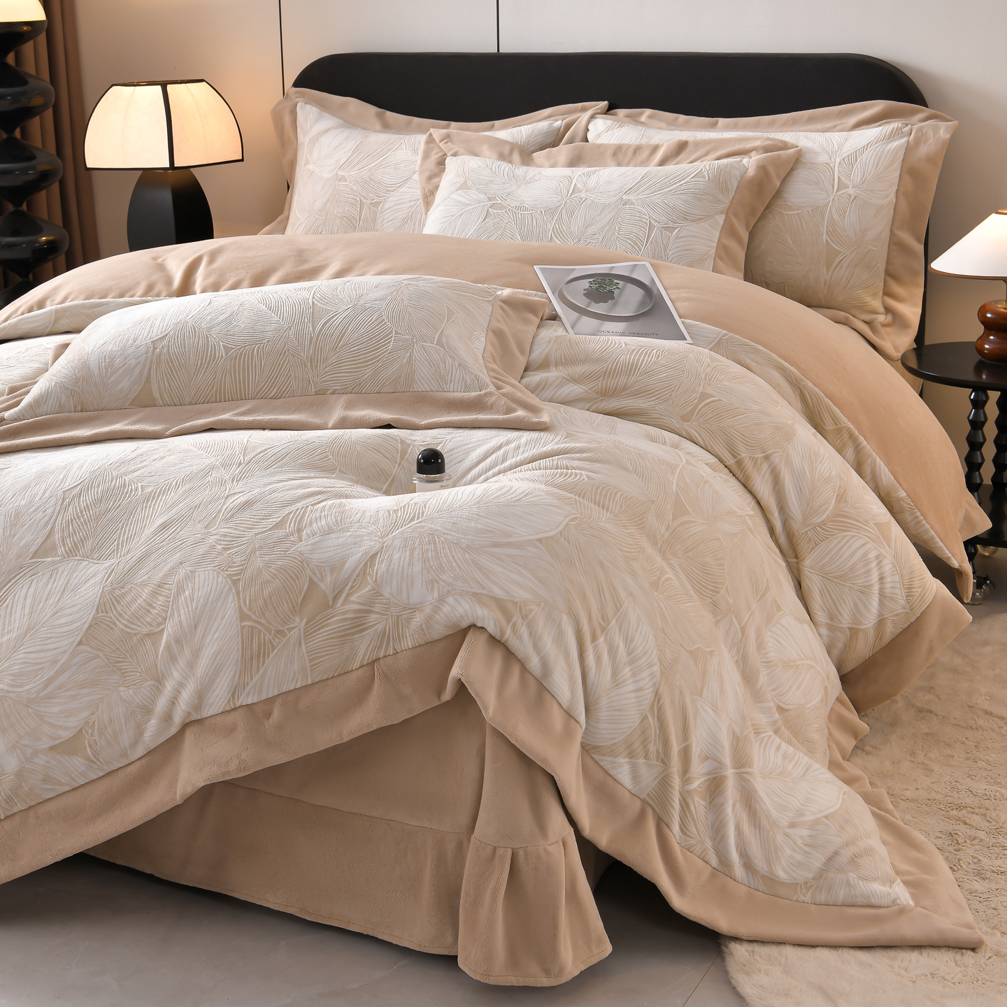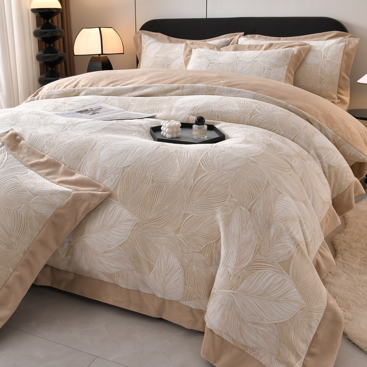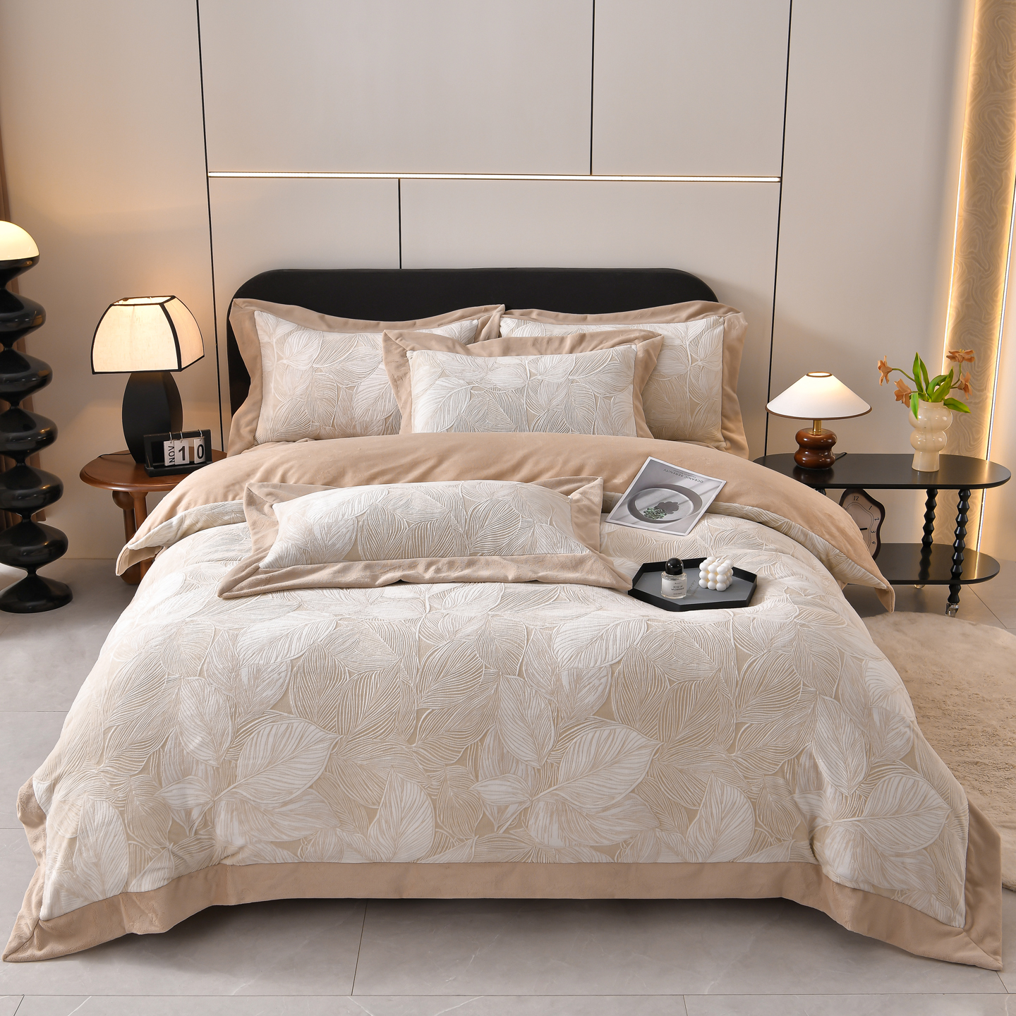 湘雪家居 2025新款高克重雕花牛奶绒四件套 霜雪-秋叶卡