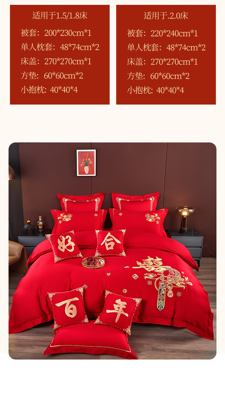 (总)皇潮婚庆馆 2025新款A类布款全棉刺绣婚庆四件套系列,花辰喜盈,百子送喜,龙悦凤鸣,喜事连连,喜迎鸿运