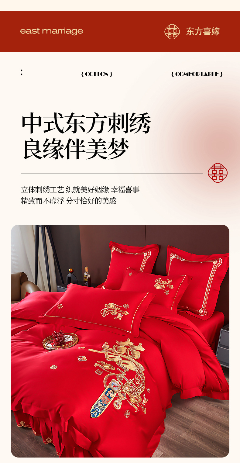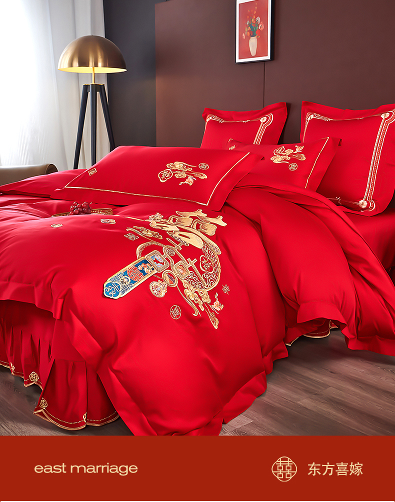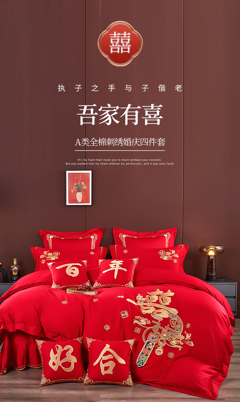 皇潮婚庆馆 2025新款A类布款全棉刺绣婚庆四件套系列 喜迎鸿运