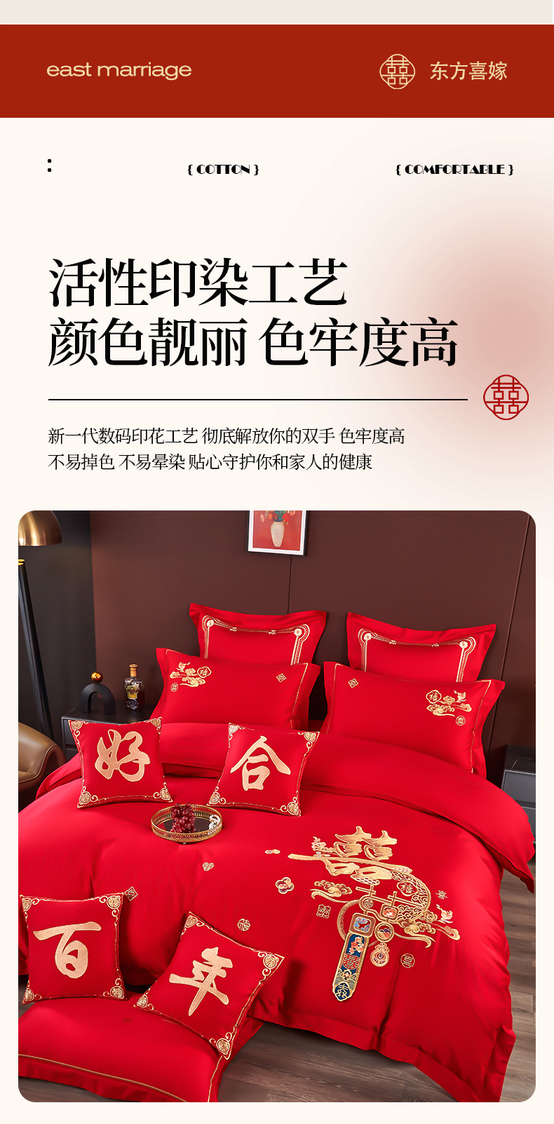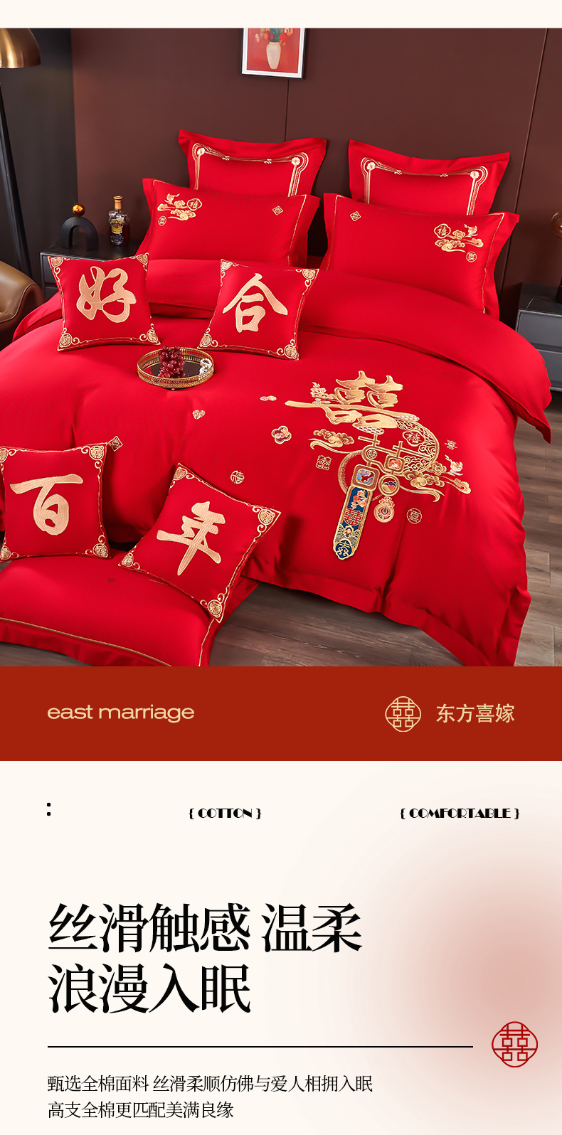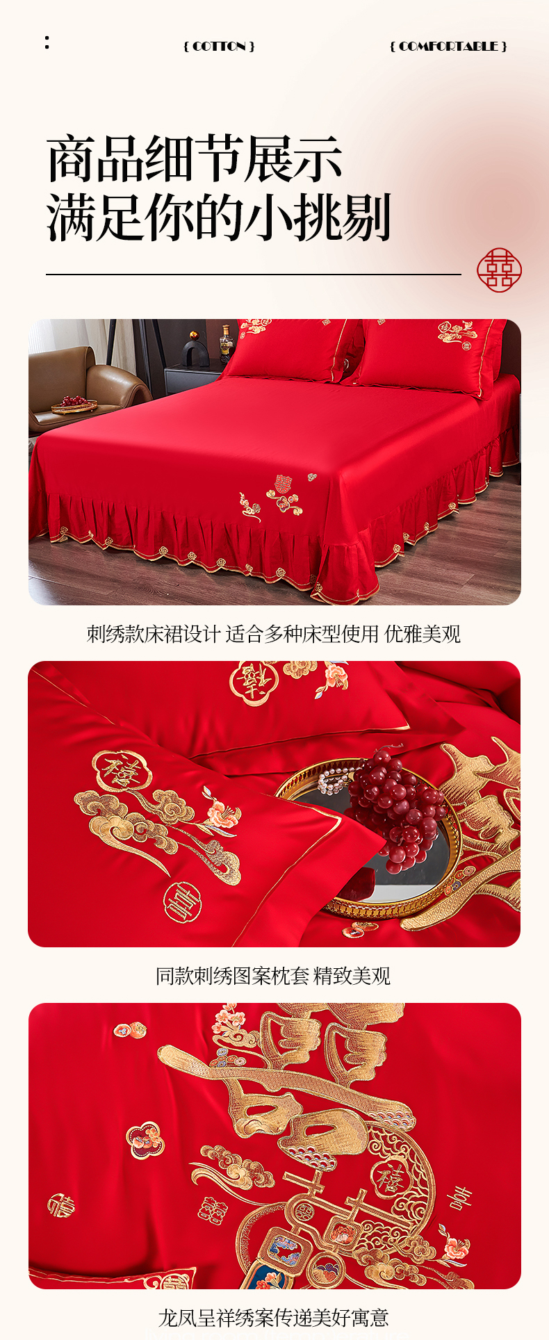 皇潮婚庆馆 2025新款A类布款全棉刺绣婚庆四件套系列 喜迎鸿运