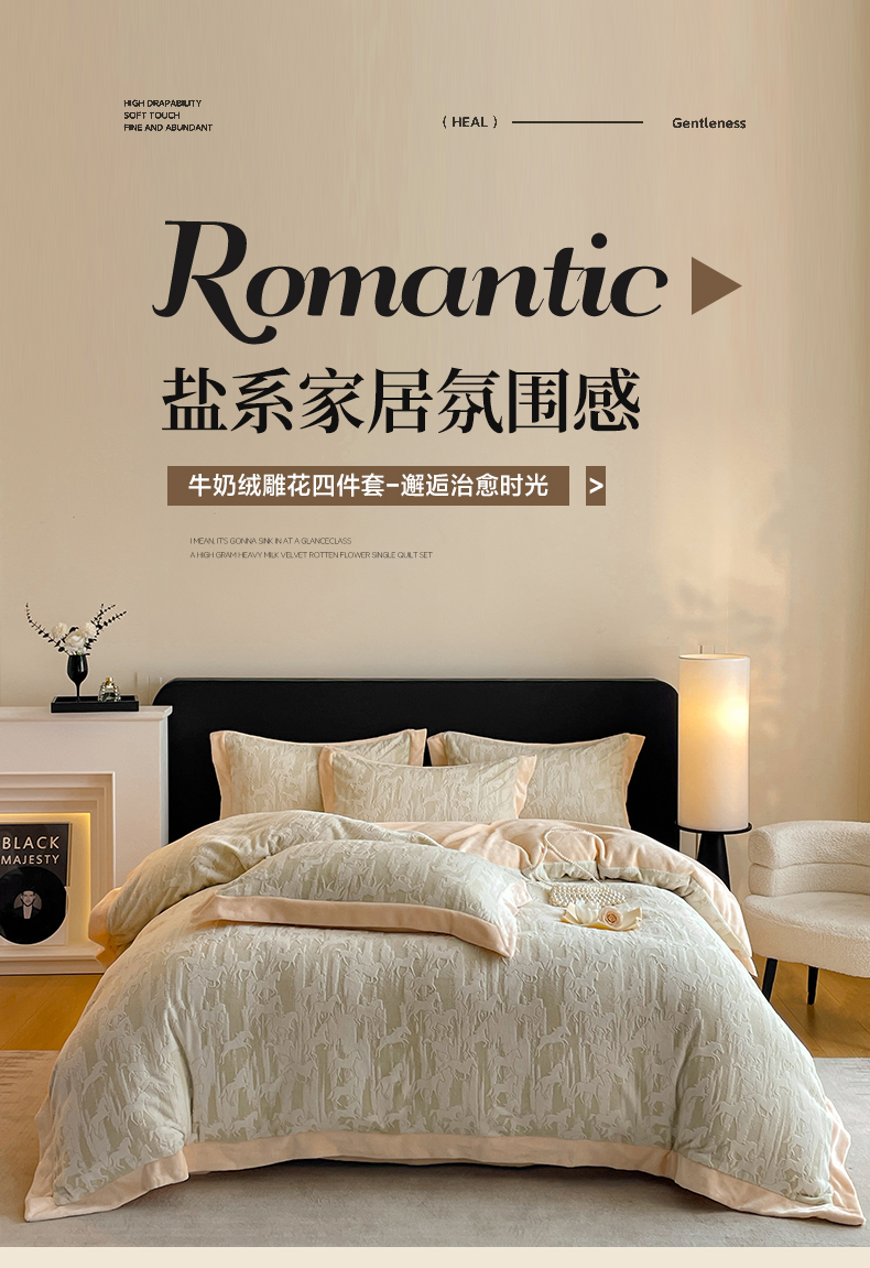 (总)民新家纺 2025新款牛奶绒宽包边雕花四件套,永恒之爱-咖,巴黎恋人-浅粉,巴黎恋人-浅灰,巴黎恋人-浅米黄,都市映像-浅灰,都市映像-浅绿,都市映像-燕麦色,英伦骑士-浅绿,英伦骑士-浅米灰,英伦骑士-浅米咖,永恒之爱-暖粉,永恒之爱-羊绒灰