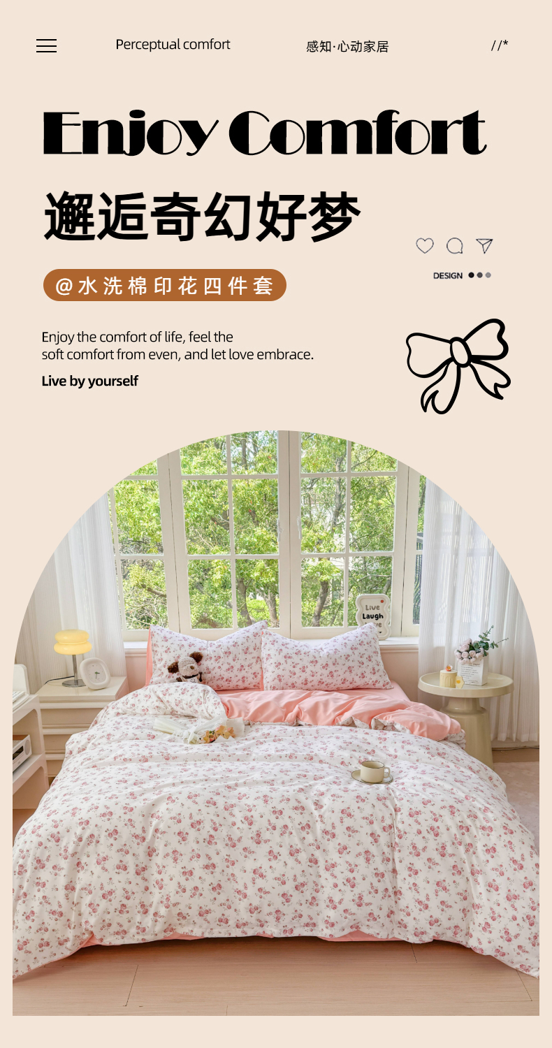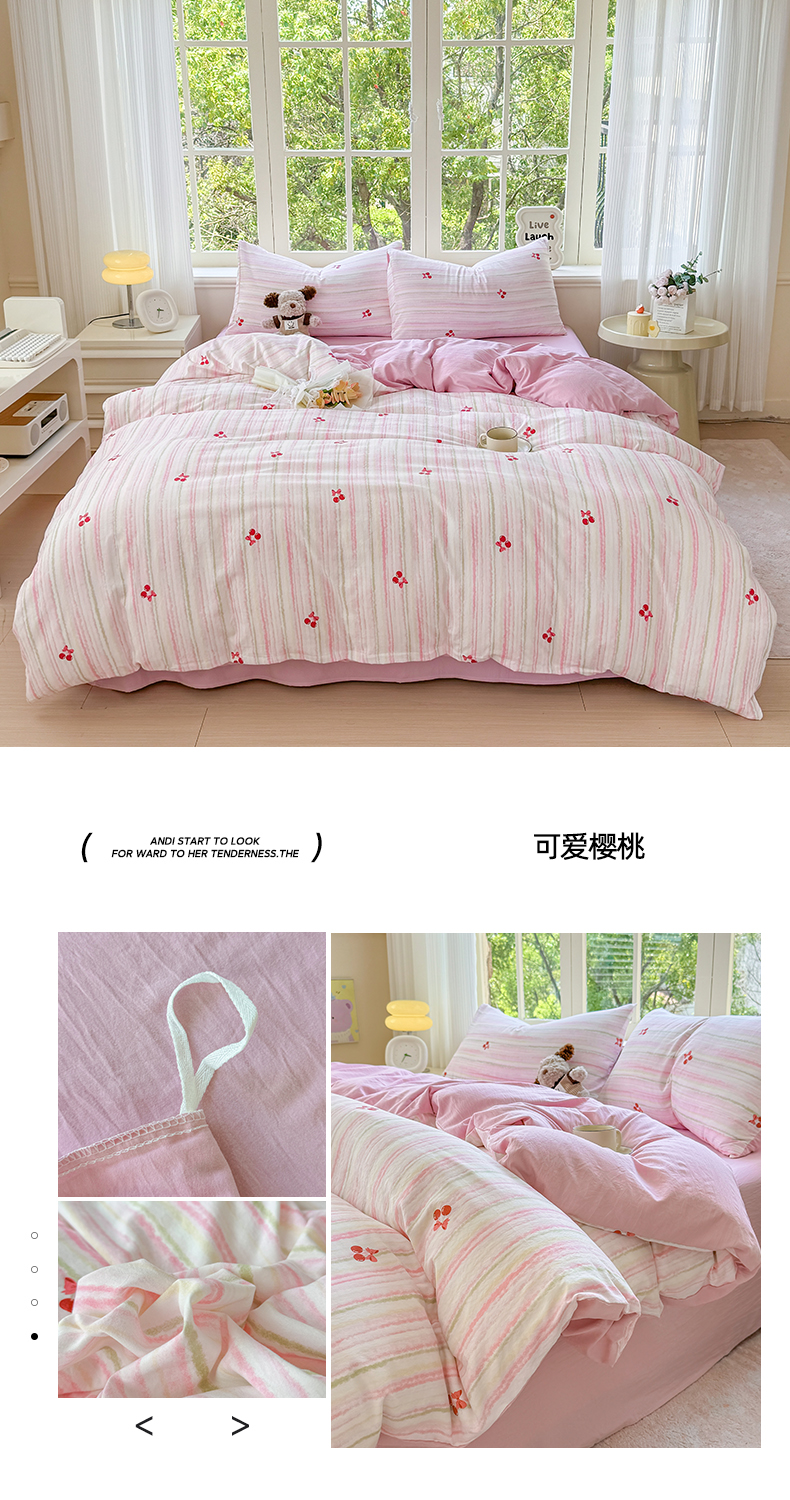 (总)仟岸家纺 2025新款亲肤舒适水洗棉四件套系列,花蜜,百福,笨笨熊,蝶梦,格子樱桃,蝴蝶结,幻彩,可爱樱桃,清禾,元气少女,紫浔,组合图