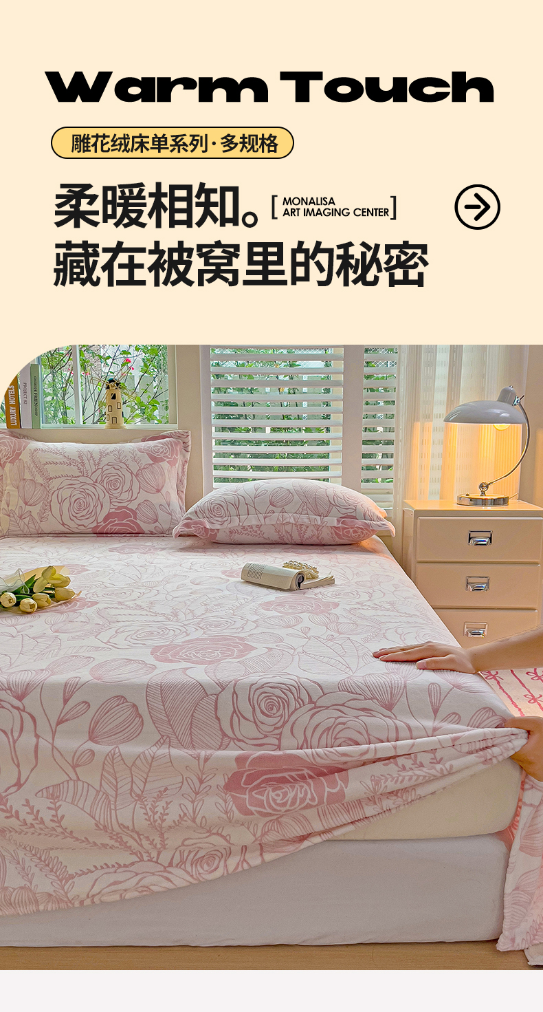 当前位置: 91家纺网 > 商品网购 > 床上用品 > 床单 > 名兮-2025新款秋冬加厚立体高克重浮雕绒床单款 朵美-粉