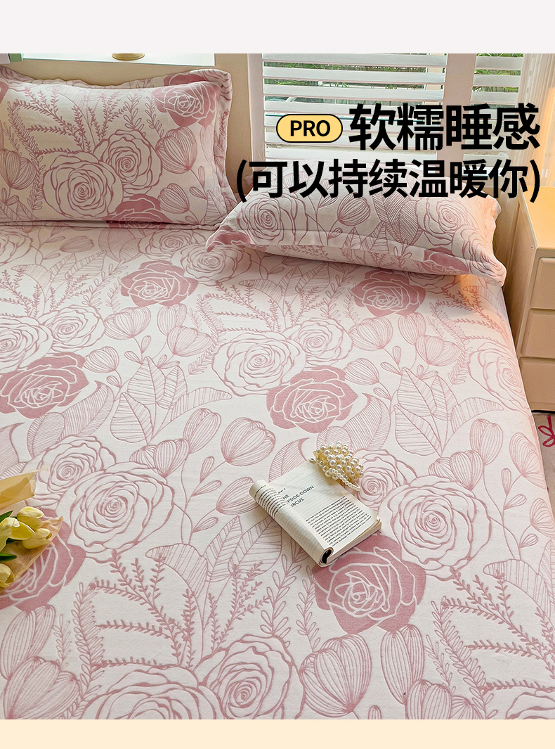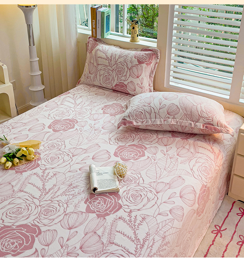 名兮-2025新款秋冬加厚立体高克重浮雕绒床单款 朵美-粉