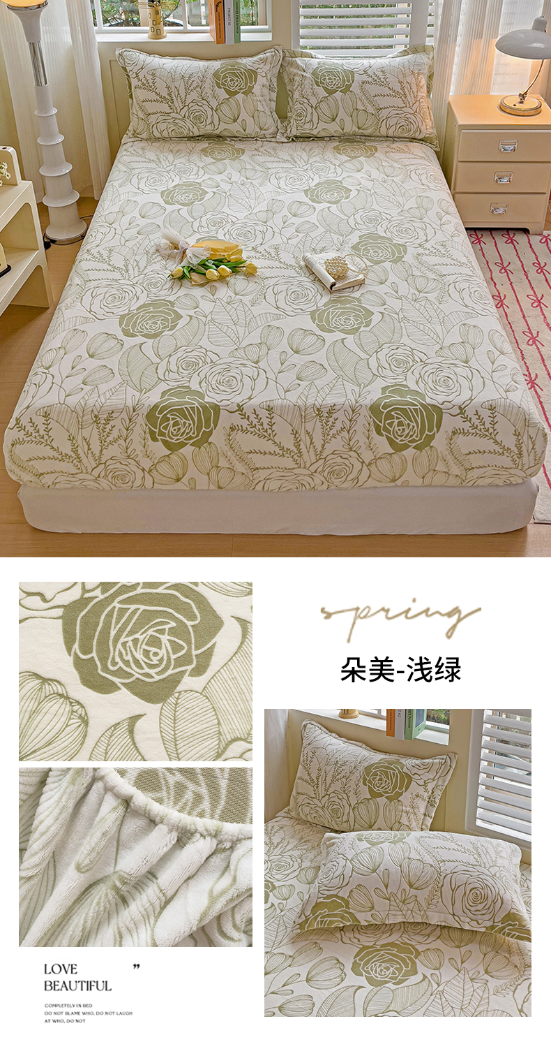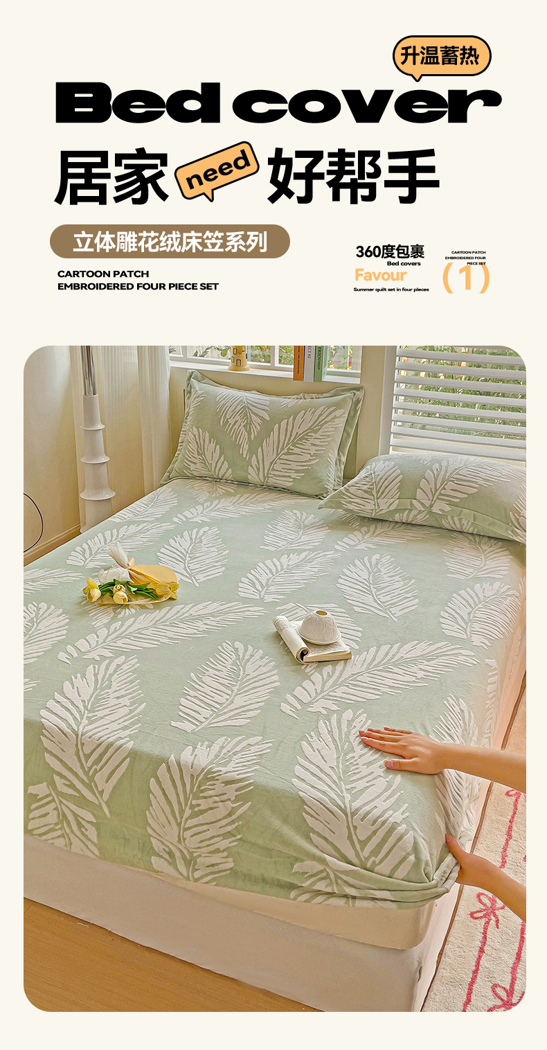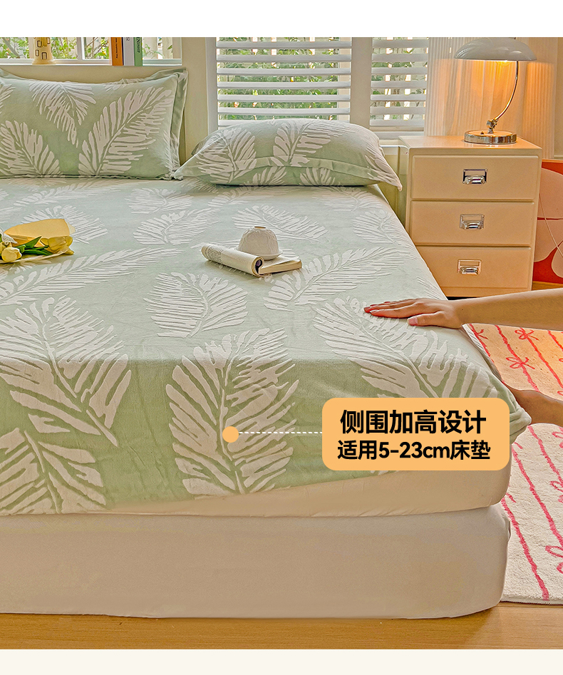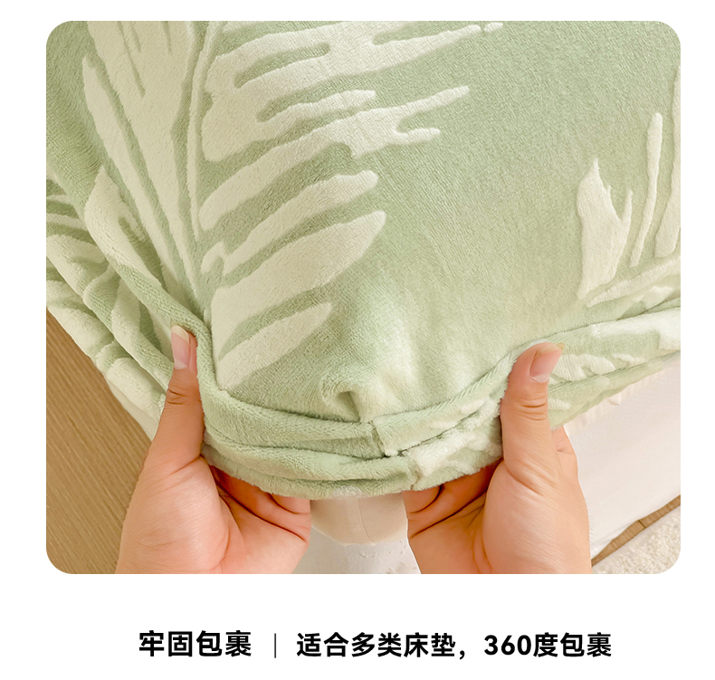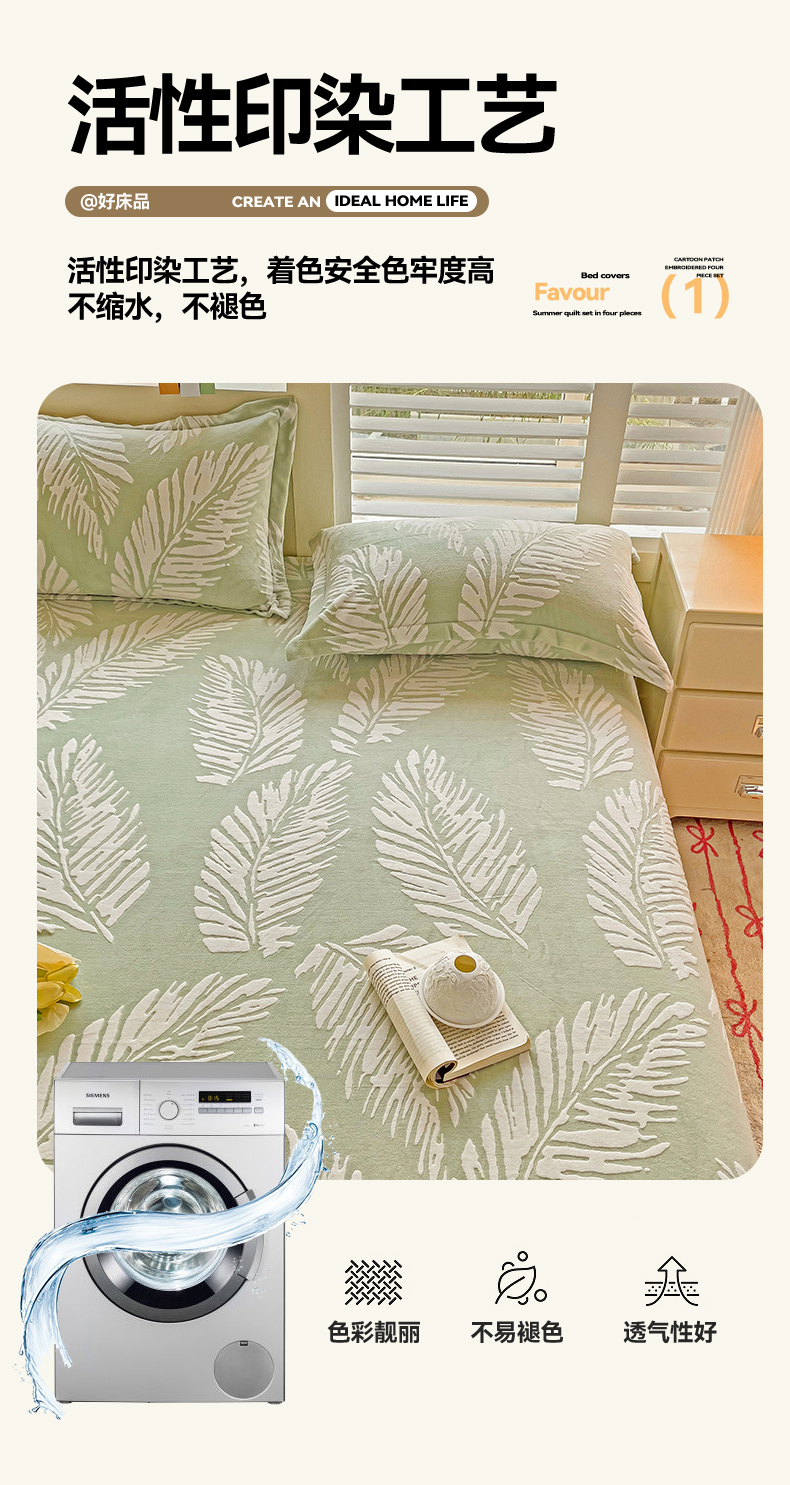 • 91家纺网 家纺一手货源 找家纺 名兮-2025新款立体高克重加厚浮雕绒单床笠款 羽毛-绿