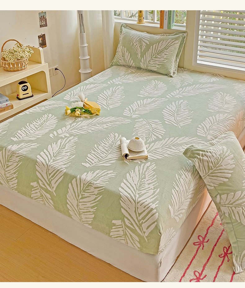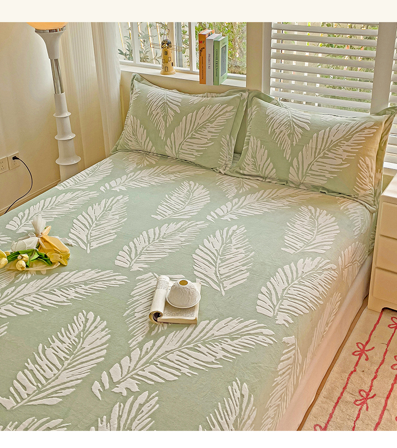 名兮-2025新款立体高克重加厚浮雕绒单床笠款 羽毛-绿