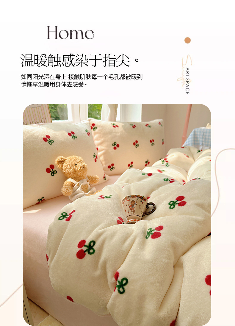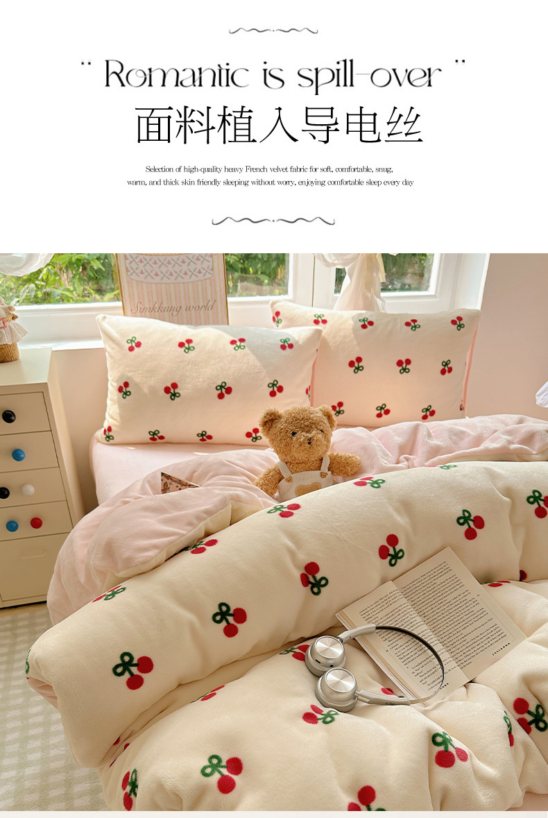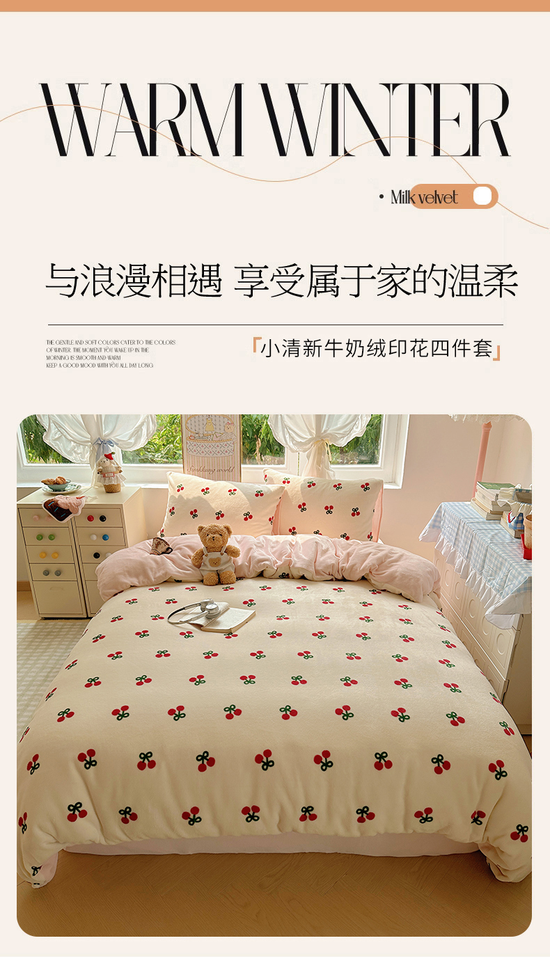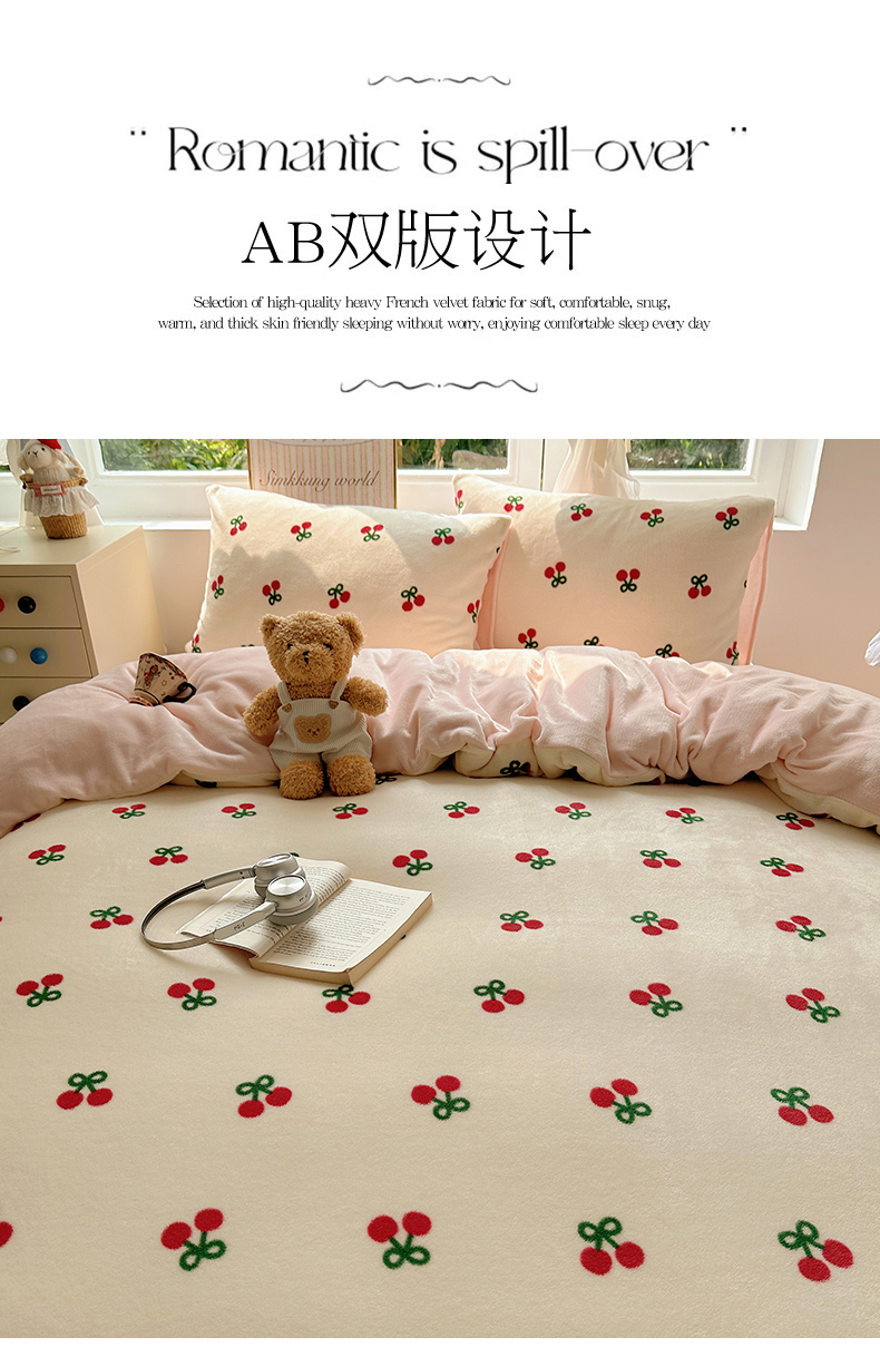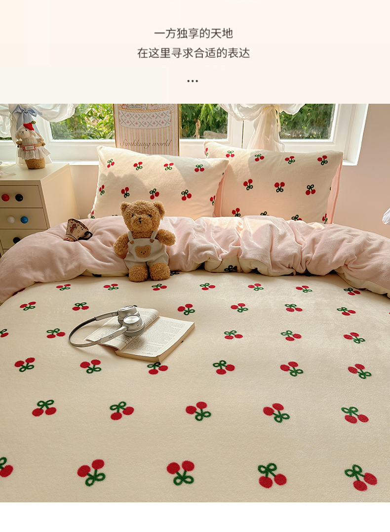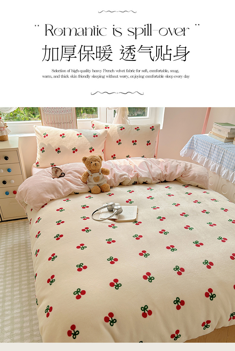 当前位置: 91家纺网 > 商品网购 > 床品套件 > 四件套 > 牛奶绒四件套 > 优选 2025新款小清新加厚高克重牛奶绒四件套直播爆款电商爆款粉色樱桃