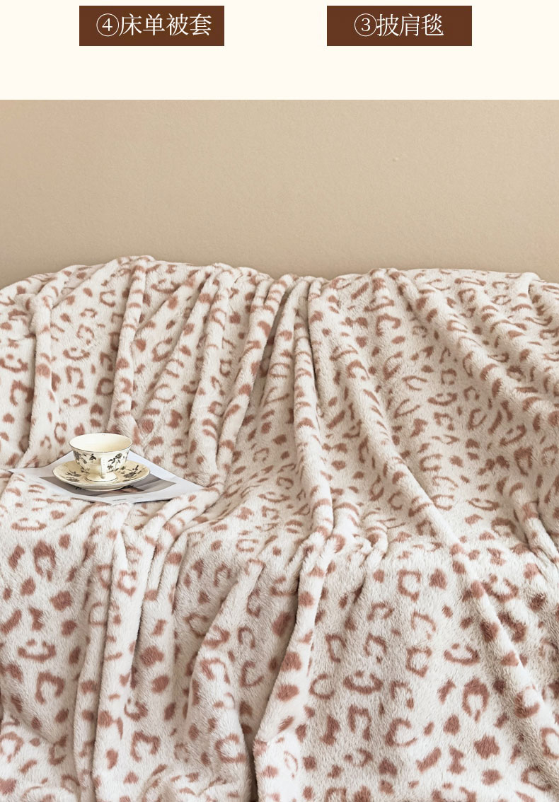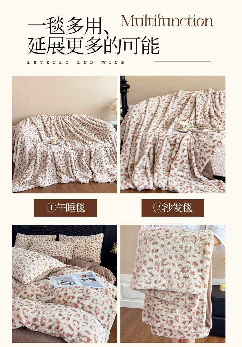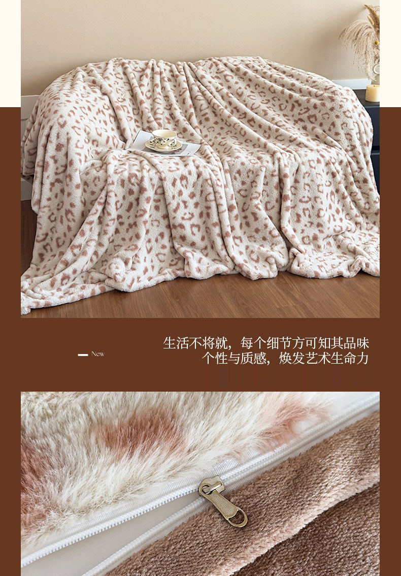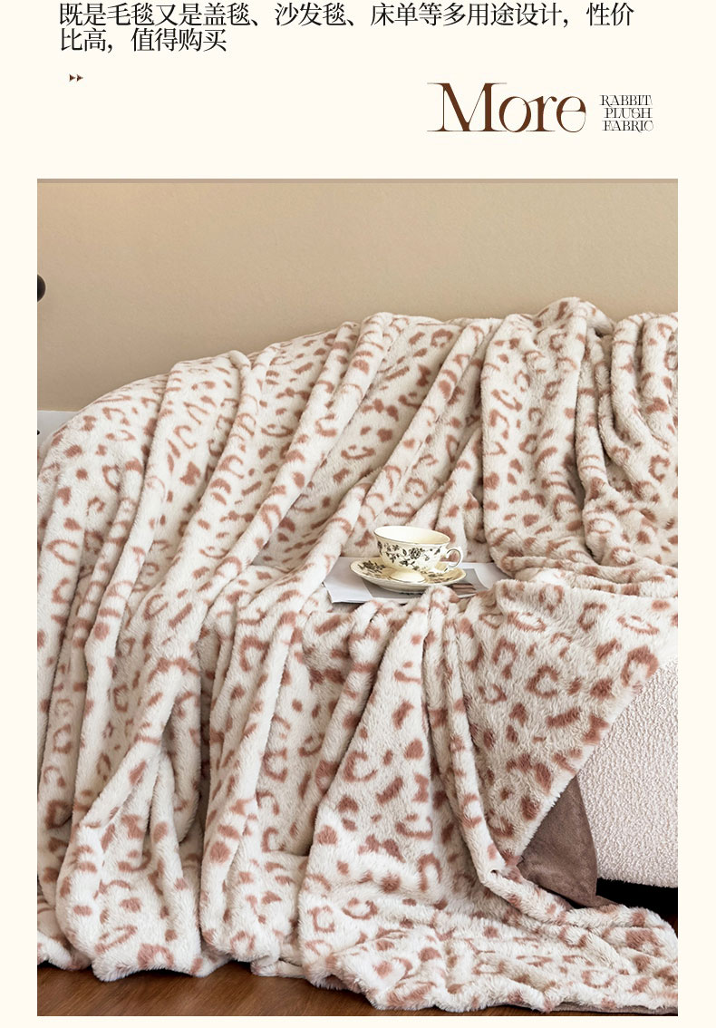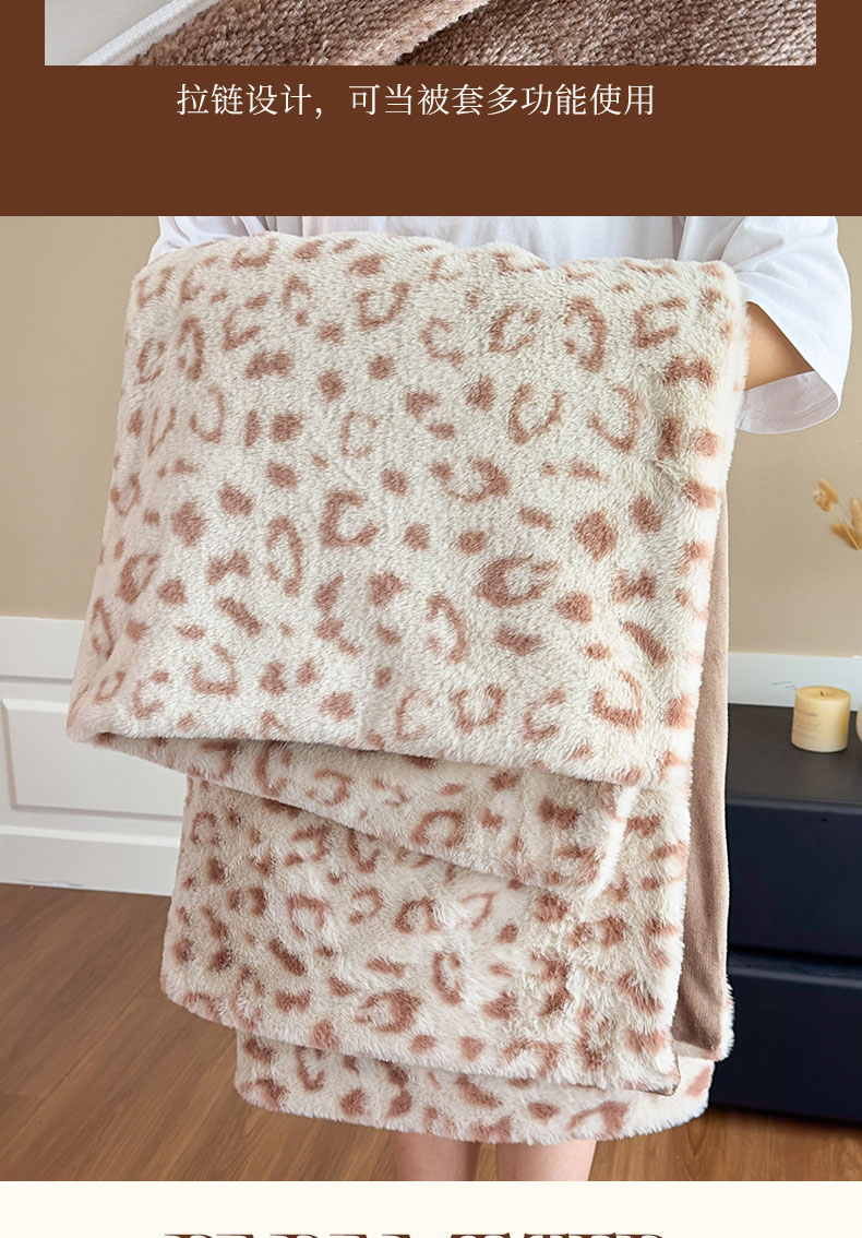 商品名称:璐维斯 2025新款A类兔毛绒双层多功能被套毯带拉链 卡通花卉牛奶绒毛毯秋冬保暖毯子盖毯 时尚豹纹