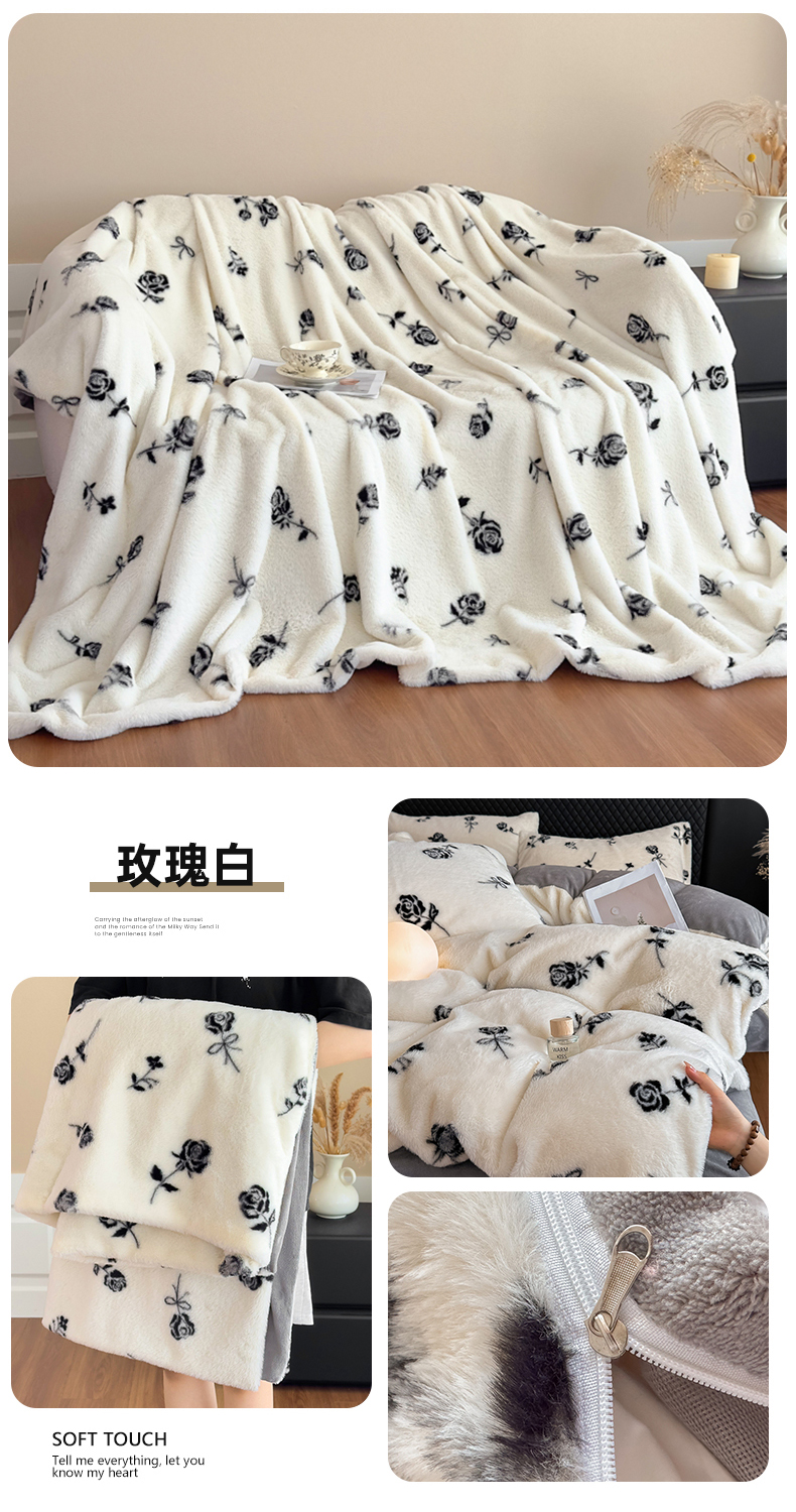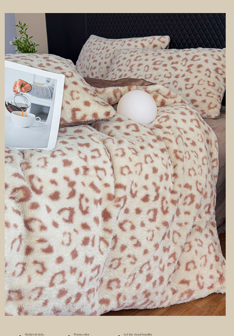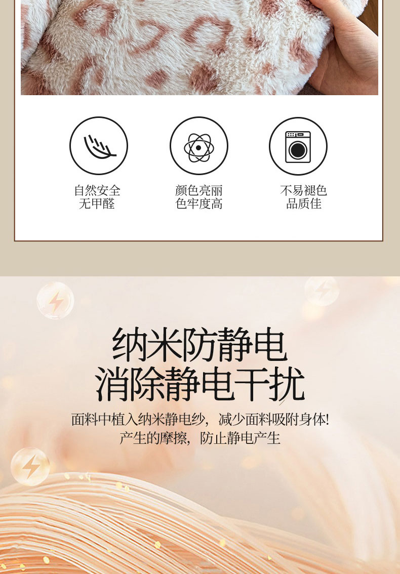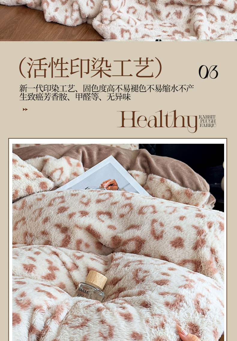 商品名称:璐维斯 2025新款A类兔毛绒双层多功能被套毯带拉链 卡通花卉牛奶绒毛毯秋冬保暖毯子盖毯 时尚豹纹