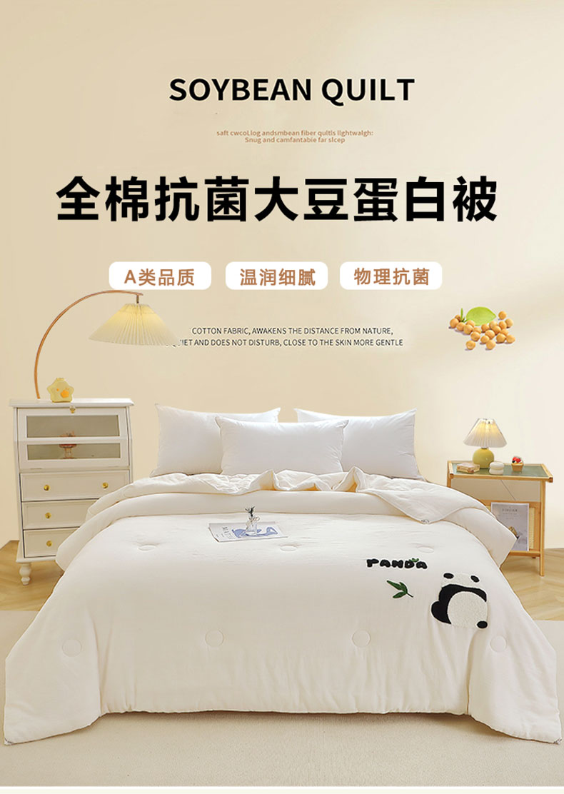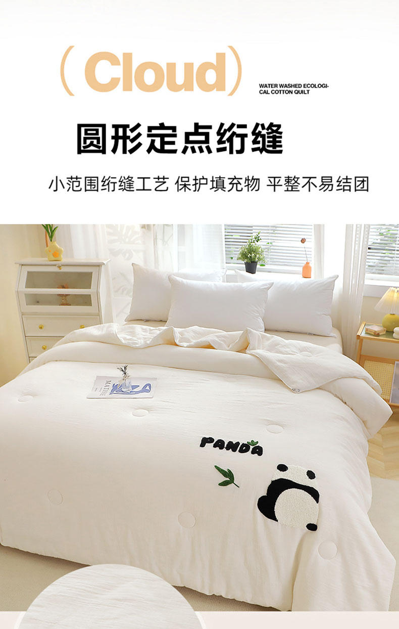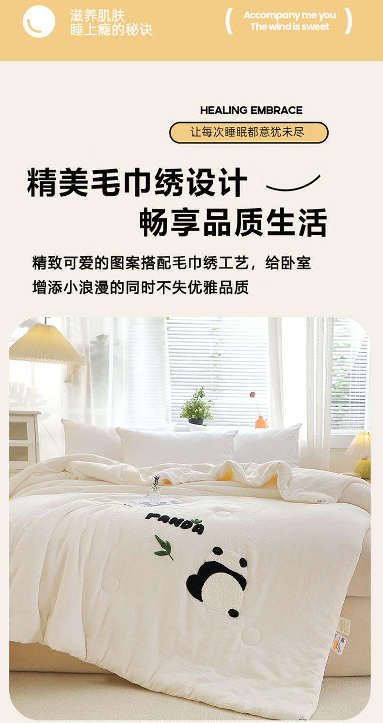 商品名称:贝兰仙奴 2025新款全棉皱皱纱毛巾绣大豆被被子被芯 萌萌熊