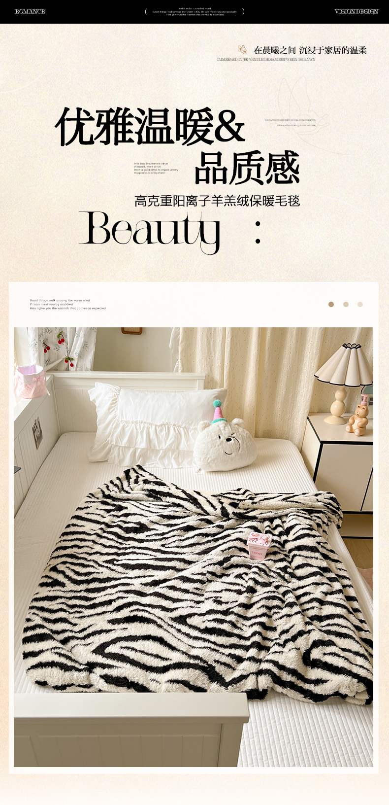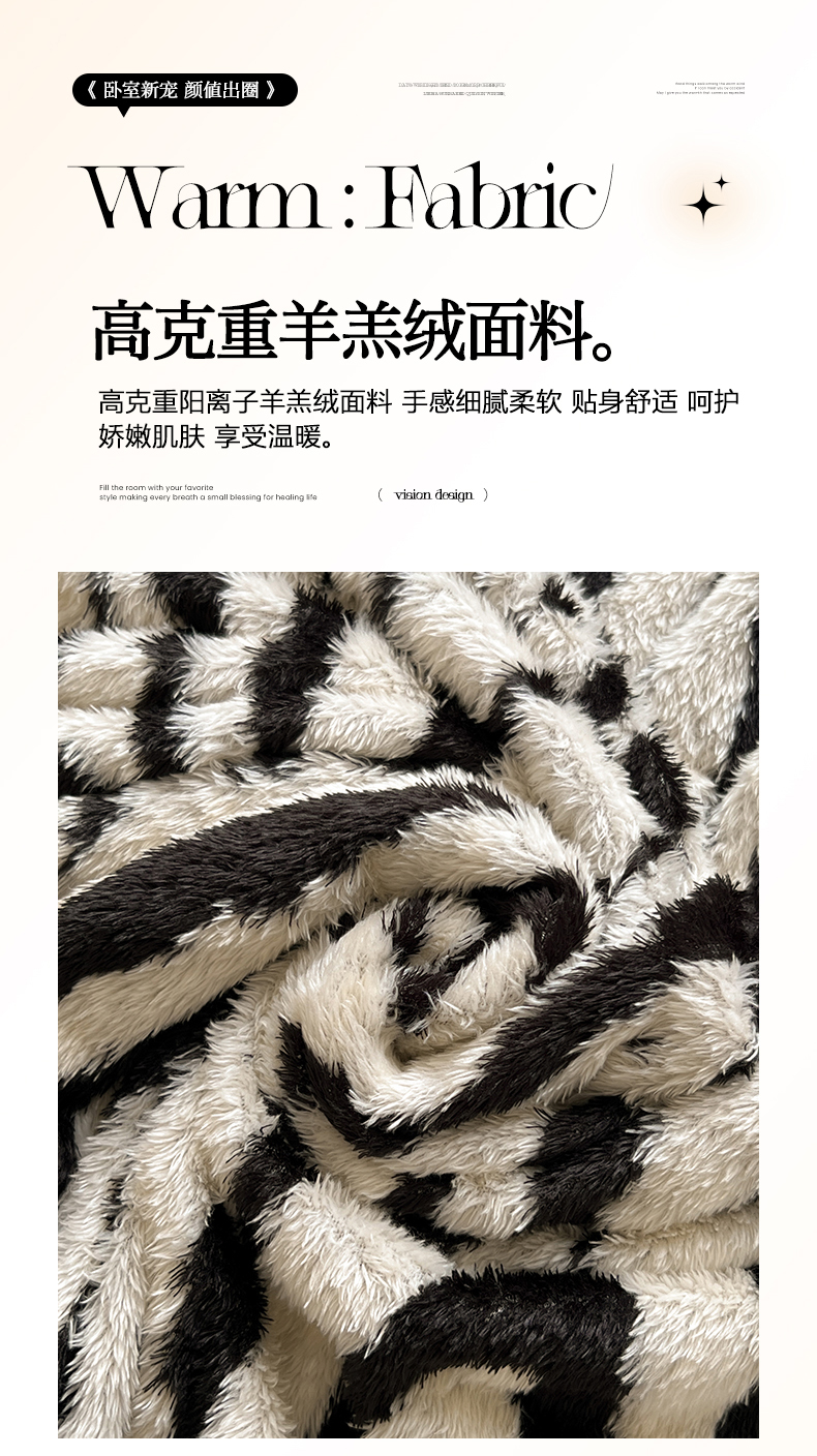 妖妖家纺 2025新款高克重阳离子羊羔绒保暖双面毛毯 云斑映素
