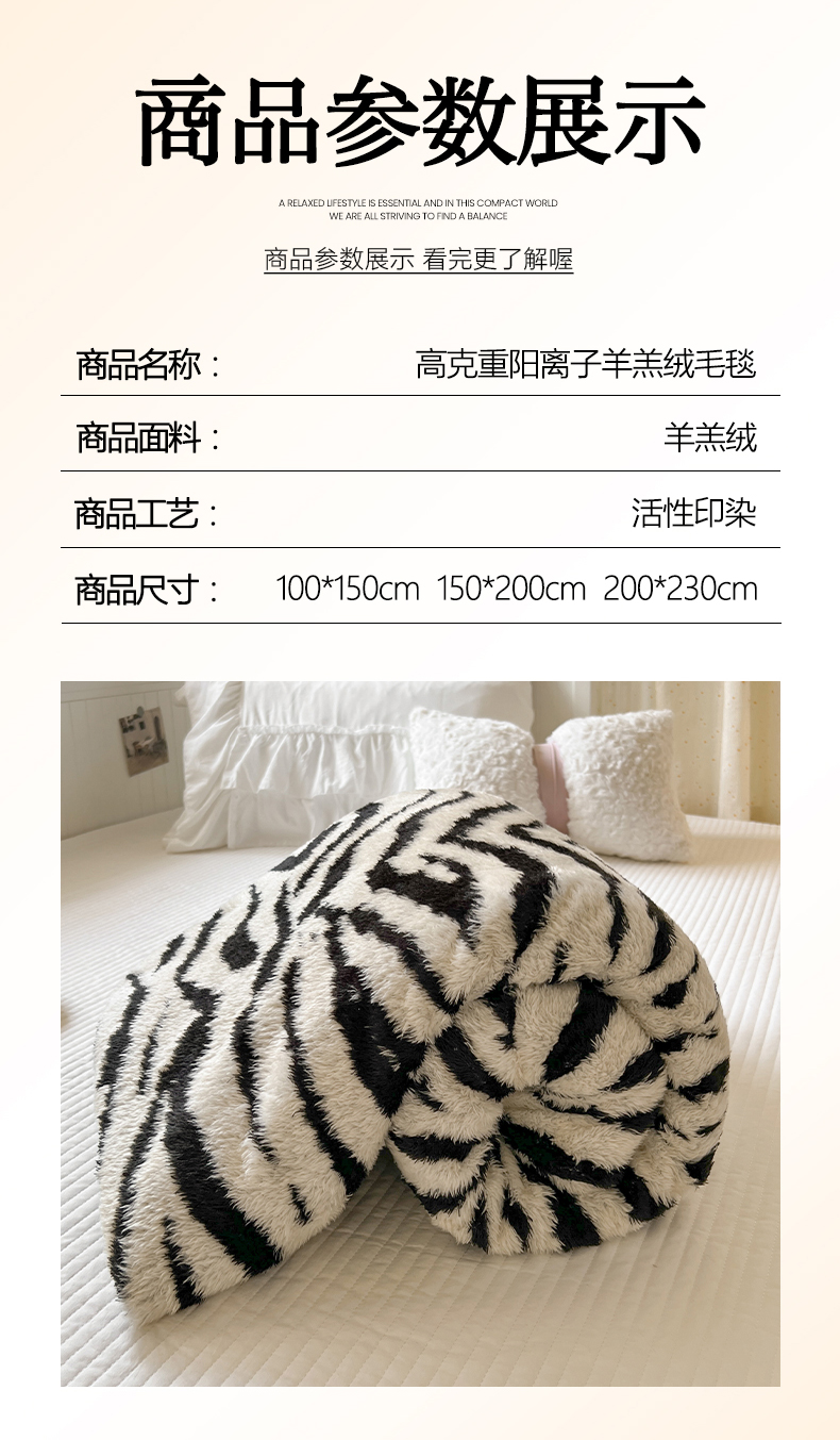 商品名称:妖妖家纺 2025新款高克重阳离子羊羔绒保暖双面毛毯 云斑映素