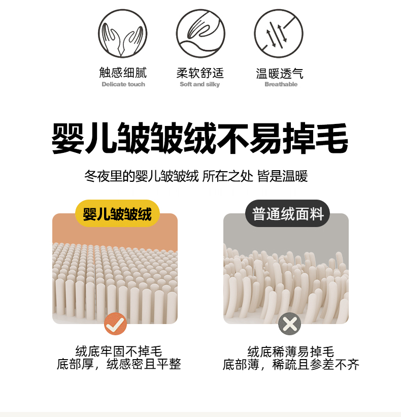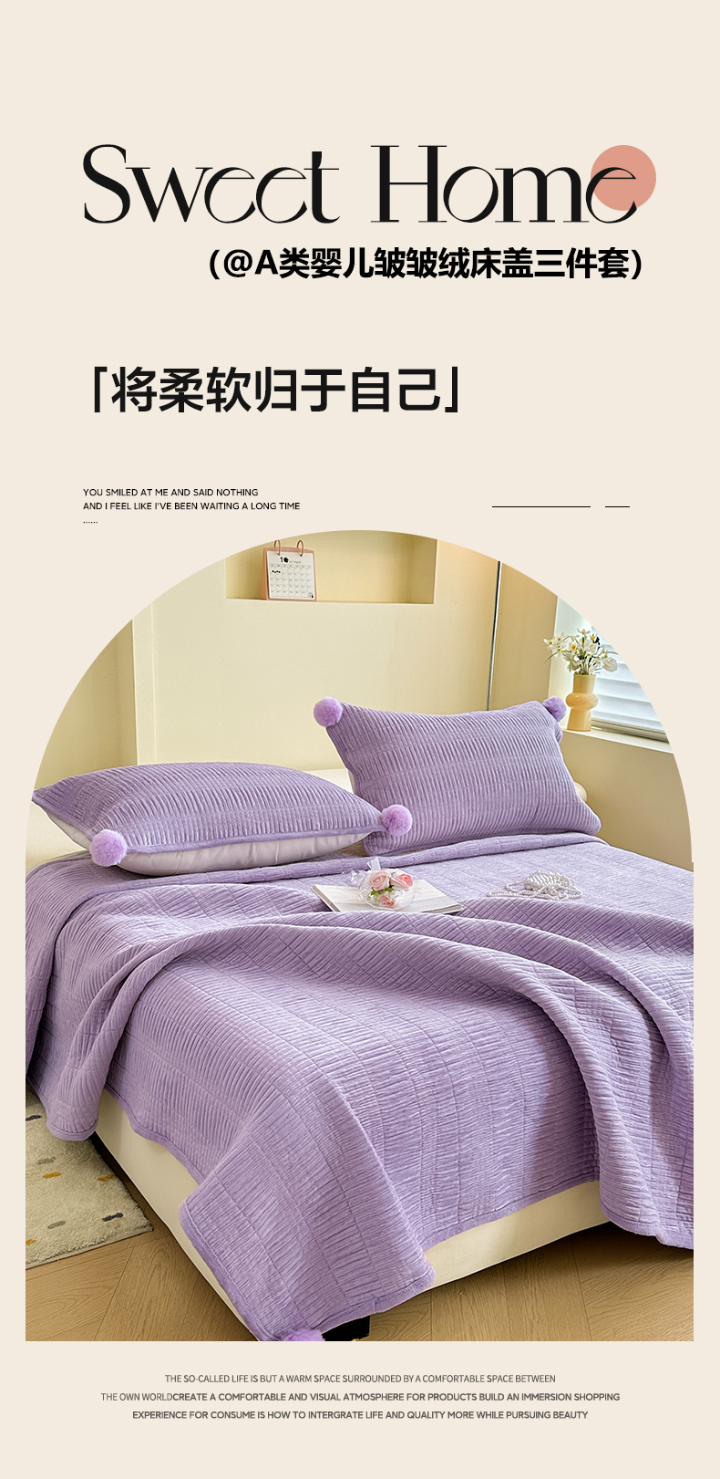 商品名称:(总)寐居家纺 2025新款婴儿皱皱绒纯色床盖三件套