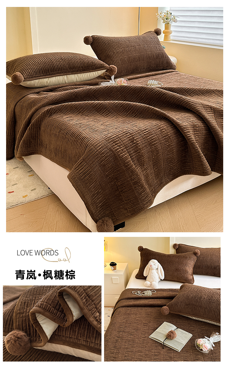 (总)寐居家纺 2025新款婴儿皱皱绒纯色床盖三件套