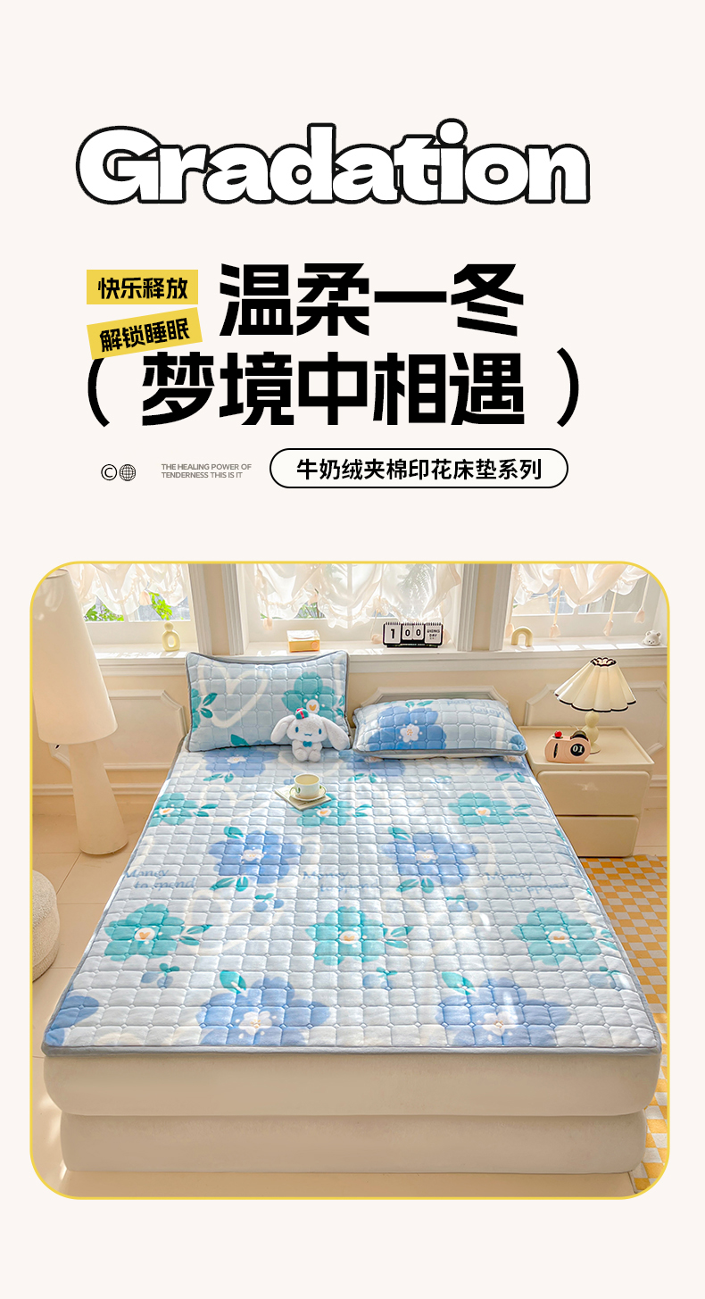 当前位置: 91家纺网 > 商品网购 > 床垫/床褥 > 普通床垫 > 小叮当家纺仓储工厂店 2025新款牛奶绒夹棉印花床垫床护垫大床图 绒床垫-灰色