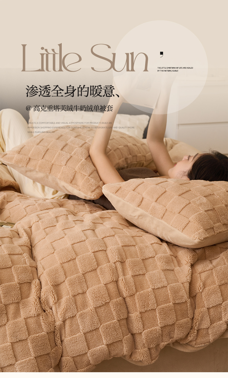 当前位置: 91家纺网 > 商品网购 > 床上用品 > 被套 > 晨曦家纺 2025新款加厚高克重230克塔芙绒牛奶绒单被套-初暖系列 初暖-薄粉色