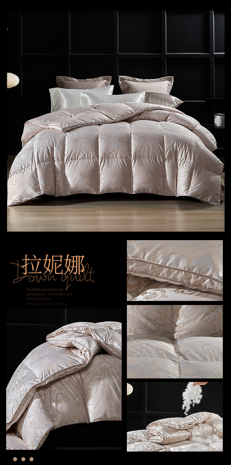 • 91家纺网 家纺一手货源 找家纺 (总)暖羽屋羽绒馆 2025新款白鹅绒丝被芯  羽绒丝被 羽毛被子 婚庆羽绒被 双人加厚冬被,恒运莱 金-角度一,恒运莱 金-角度二