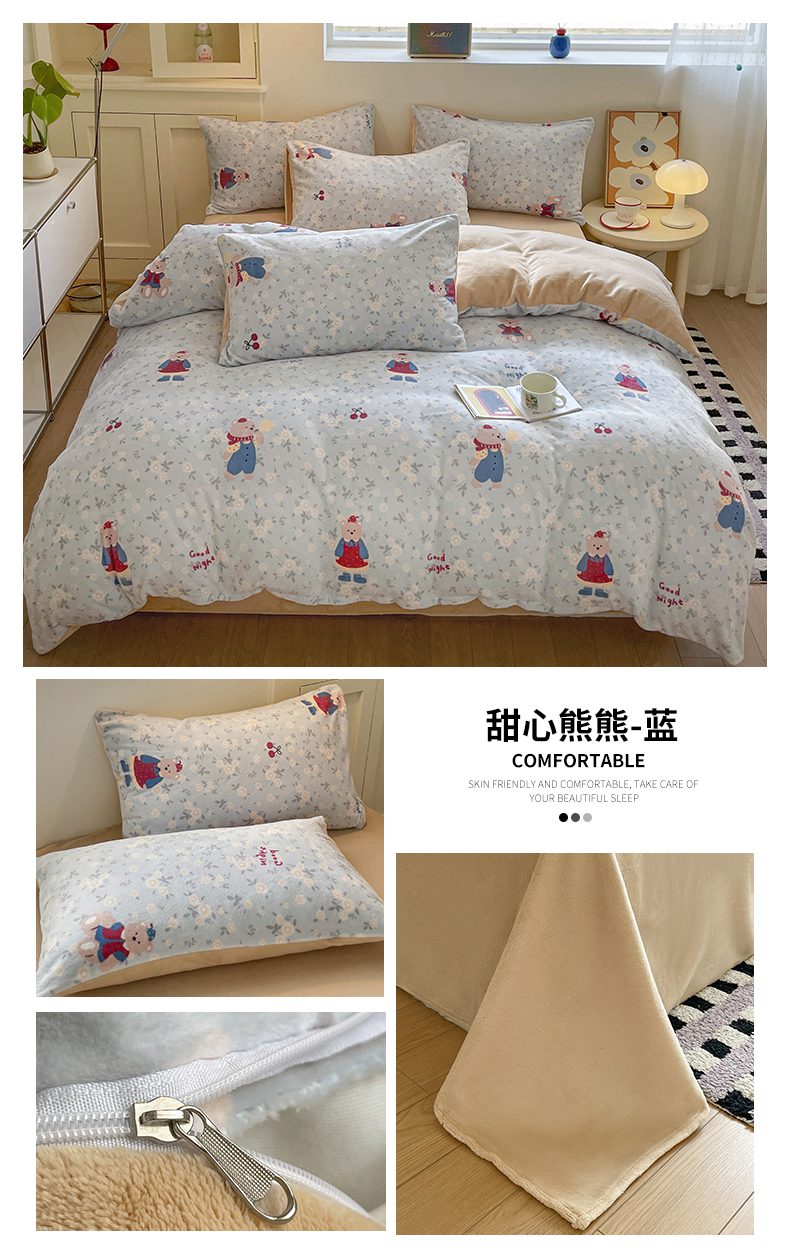 商品名称:如约 2025新款印花牛奶绒四件套 动物乐园