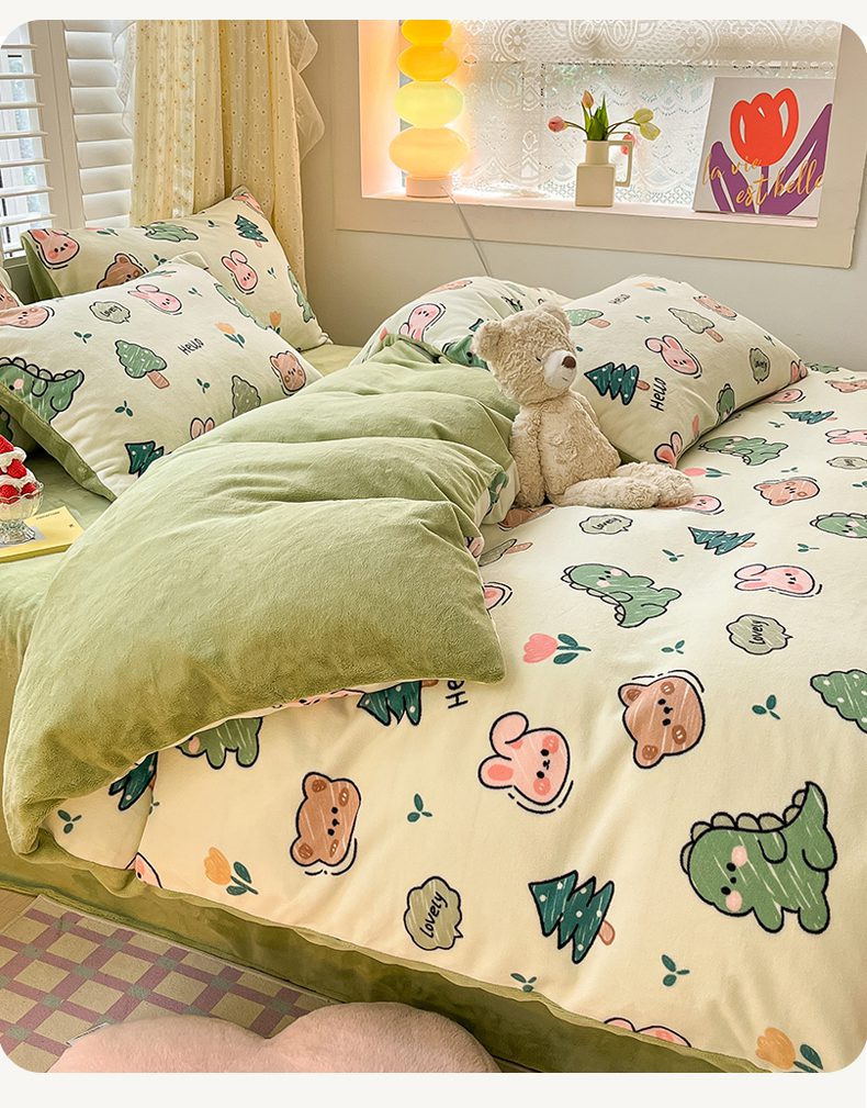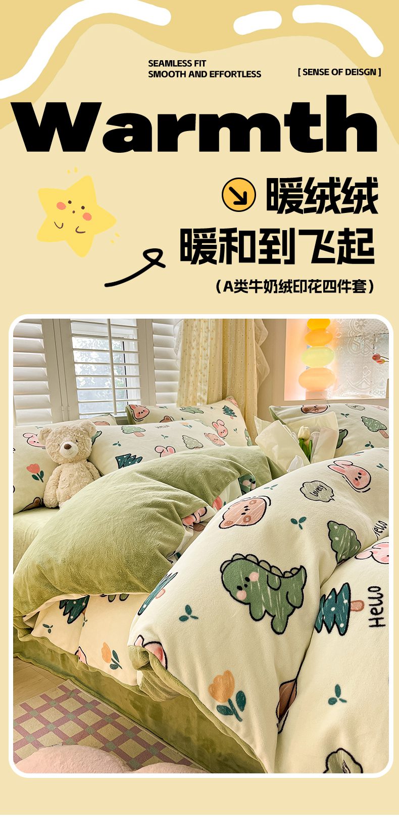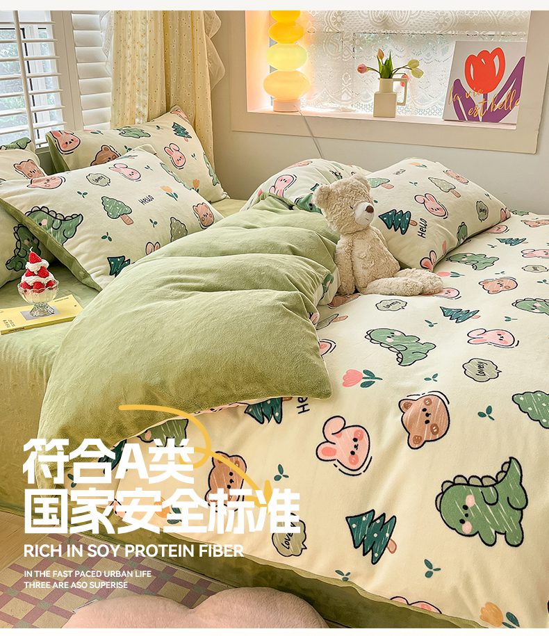 如约 2025新款印花牛奶绒四件套 动物乐园