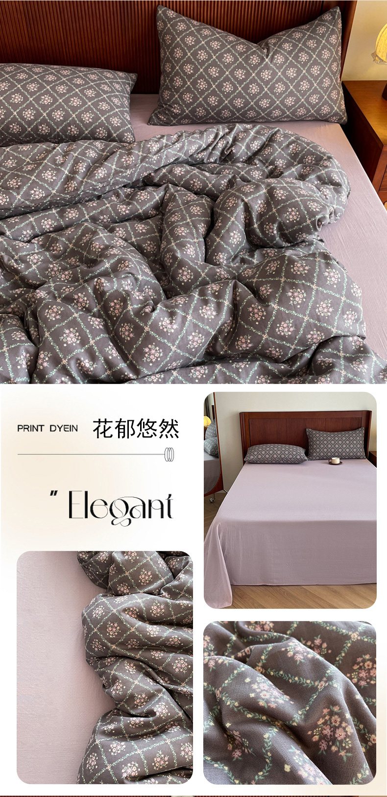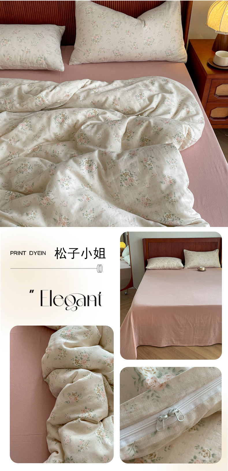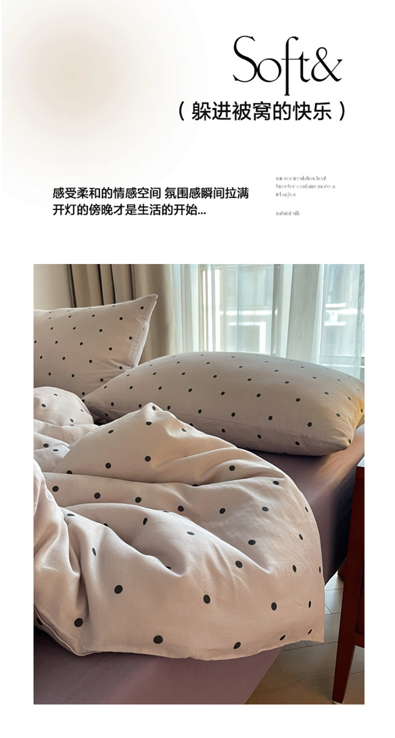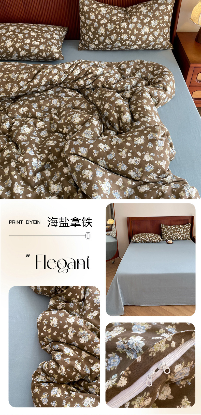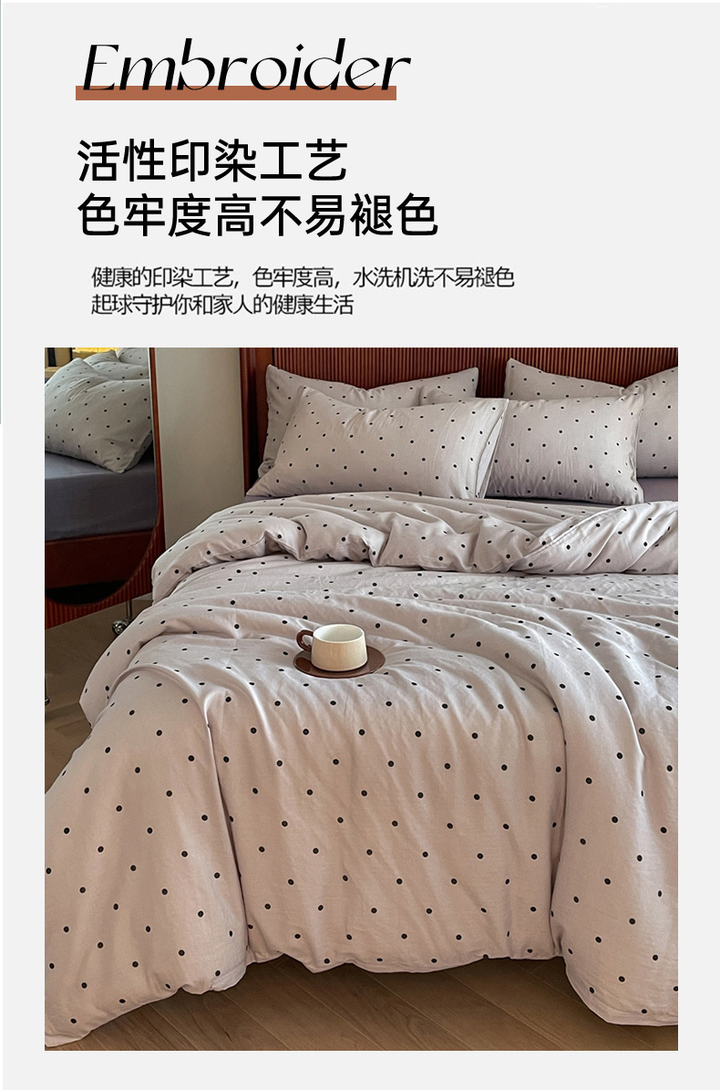 商品名称:典曼家纺 2025新款A类母婴级抗菌有氧双层纱亲肤小清新印花三件套四件套 可心咖