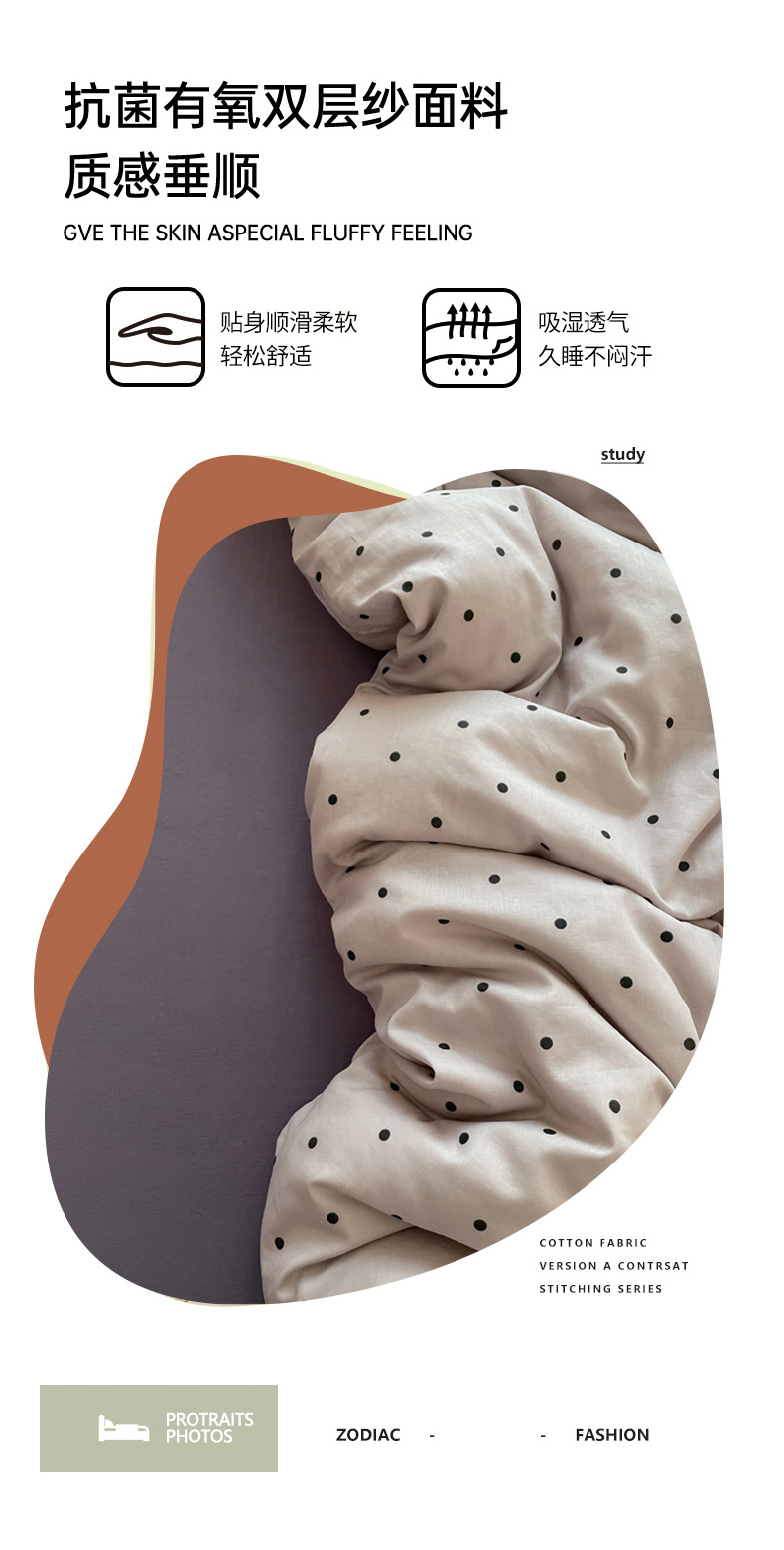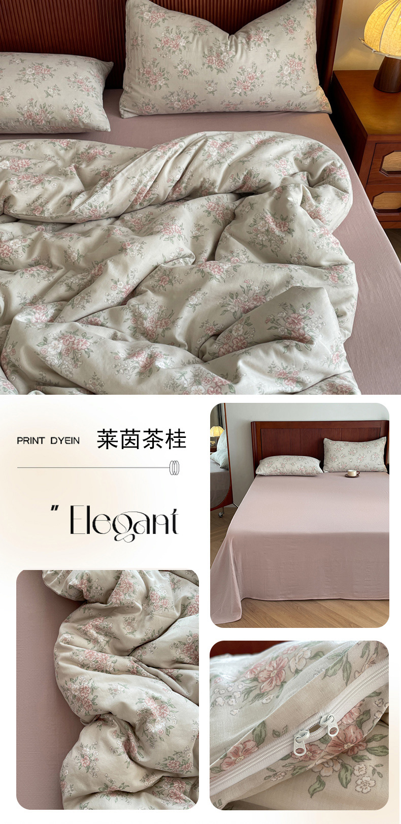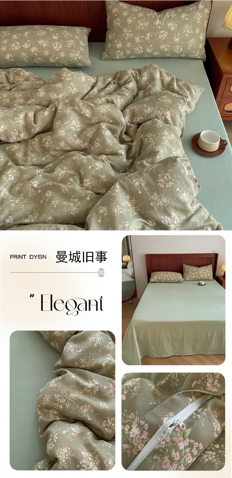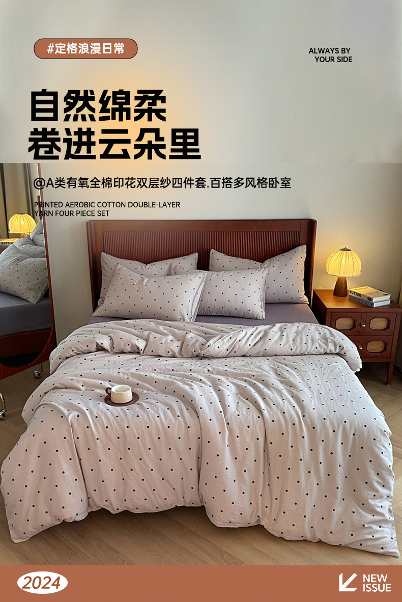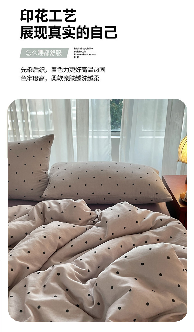 商品名称:典曼家纺 2025新款A类母婴级抗菌有氧双层纱亲肤小清新印花三件套四件套 可心咖