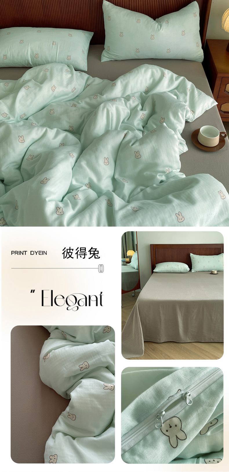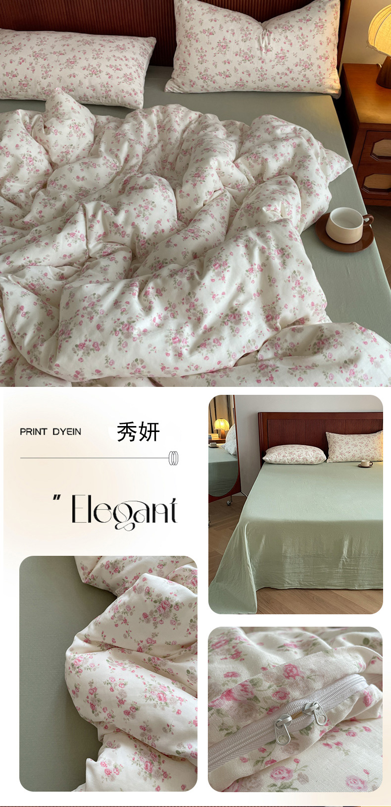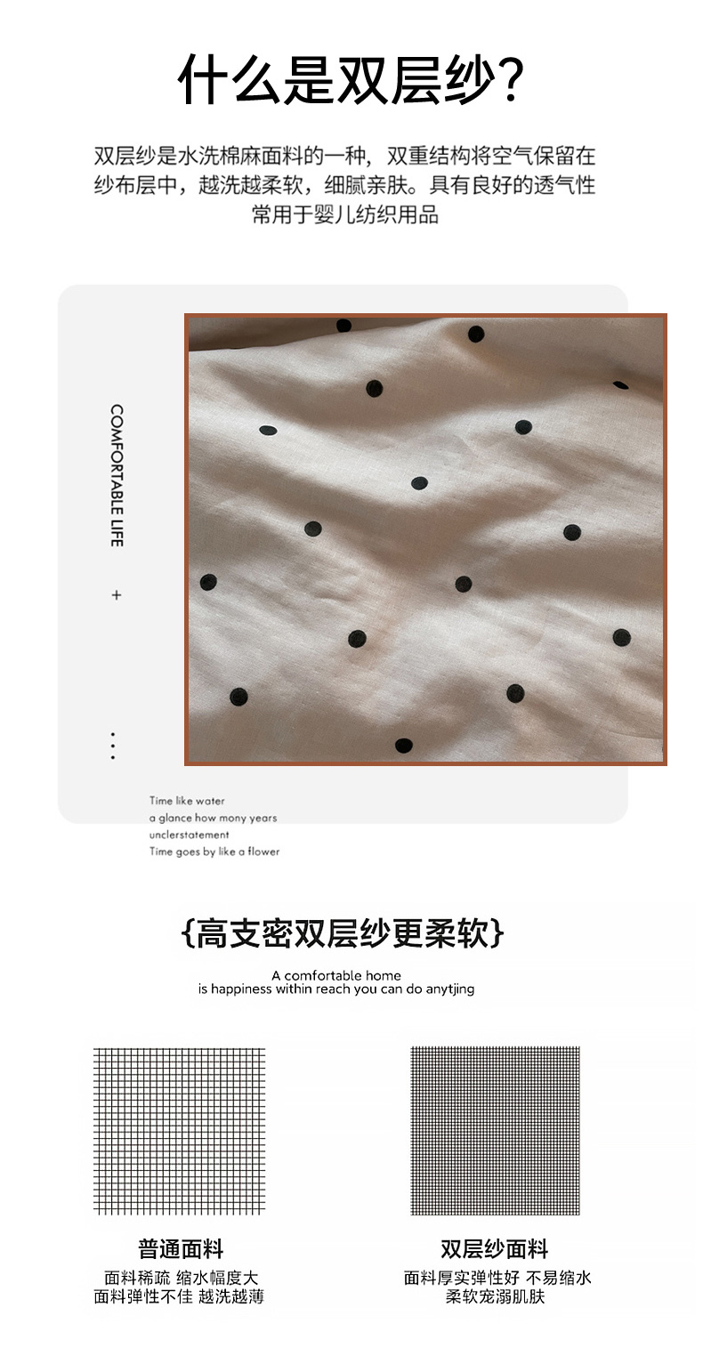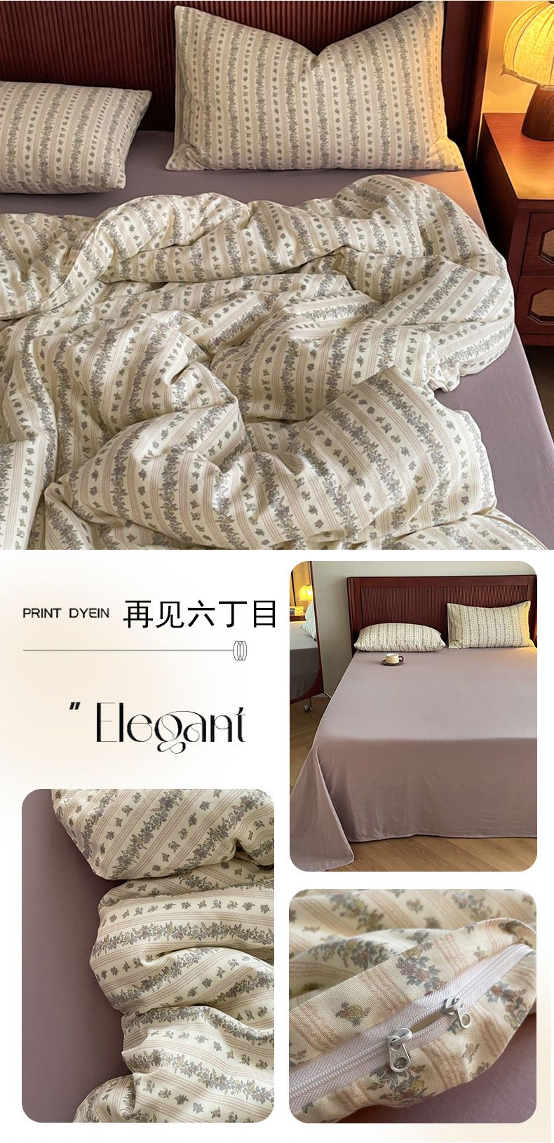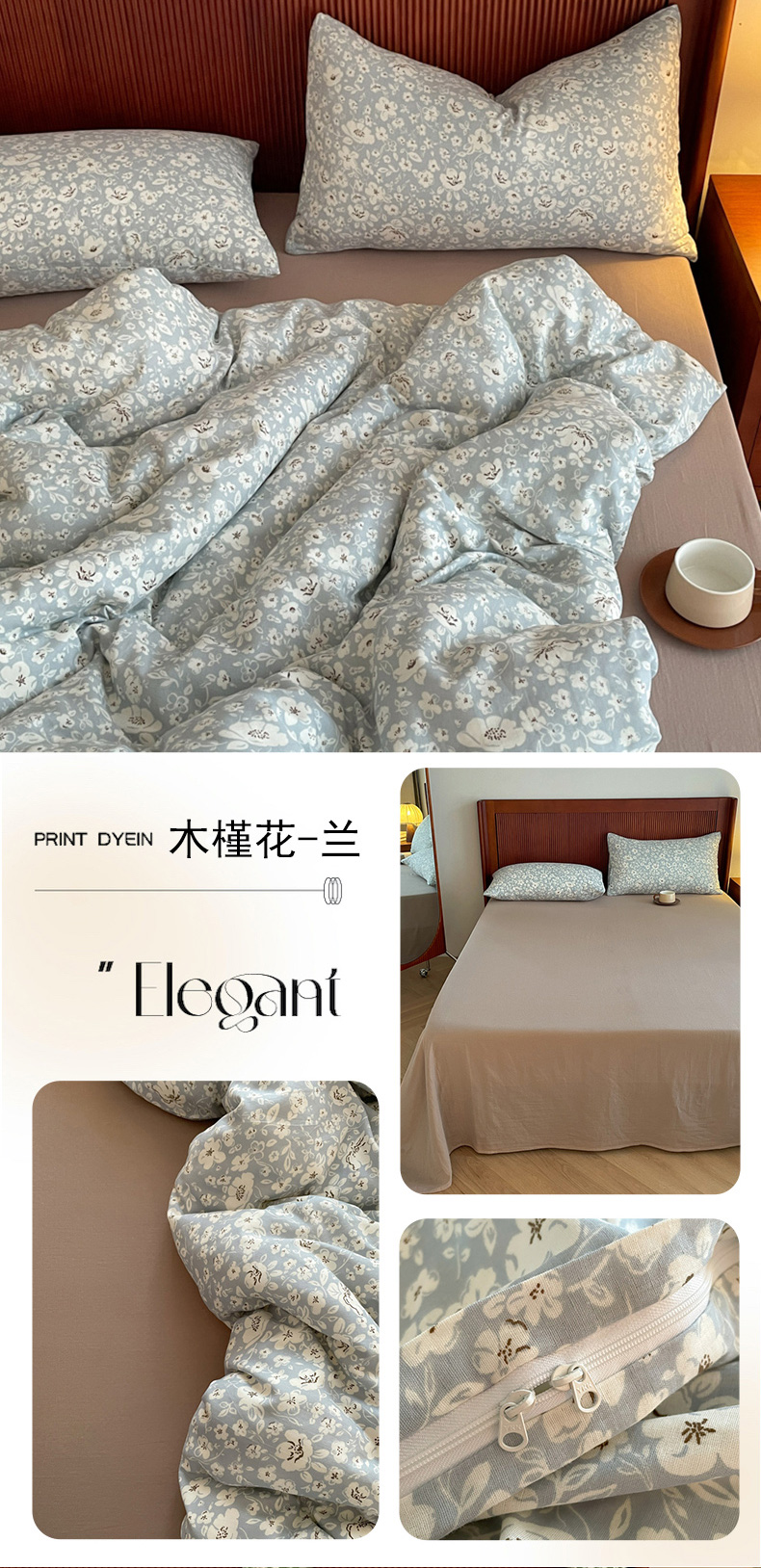 商品名称:典曼家纺 2025新款A类母婴级抗菌有氧双层纱亲肤小清新印花三件套四件套 可心咖