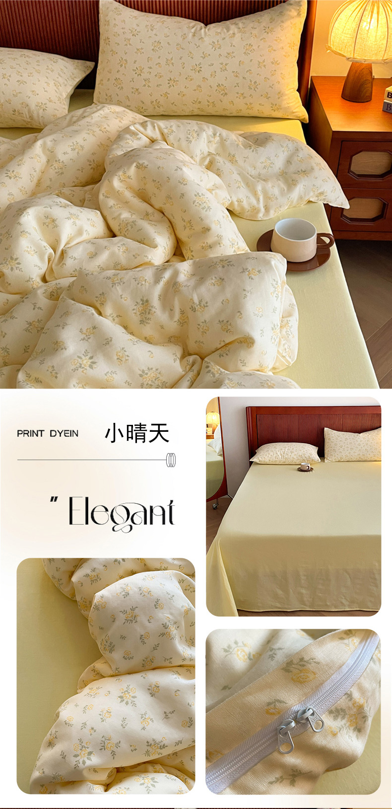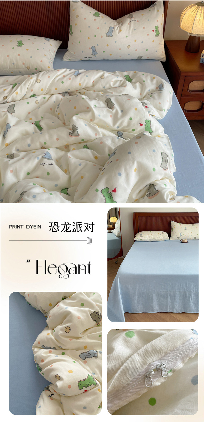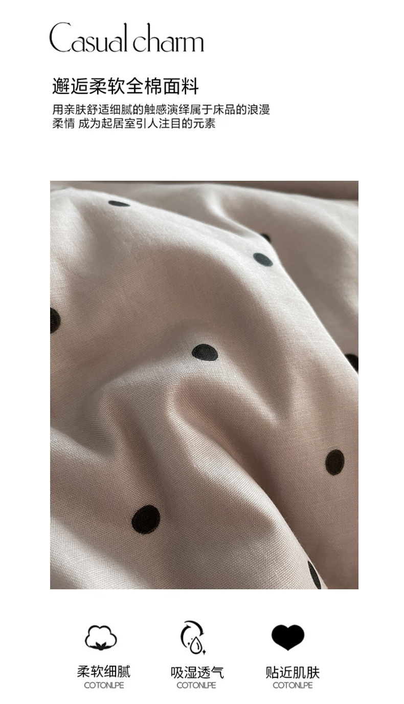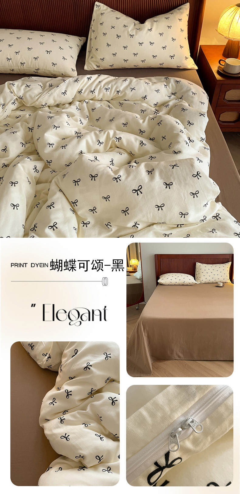 商品名称:典曼家纺 2025新款A类母婴级抗菌有氧双层纱亲肤小清新印花三件套四件套 可心咖