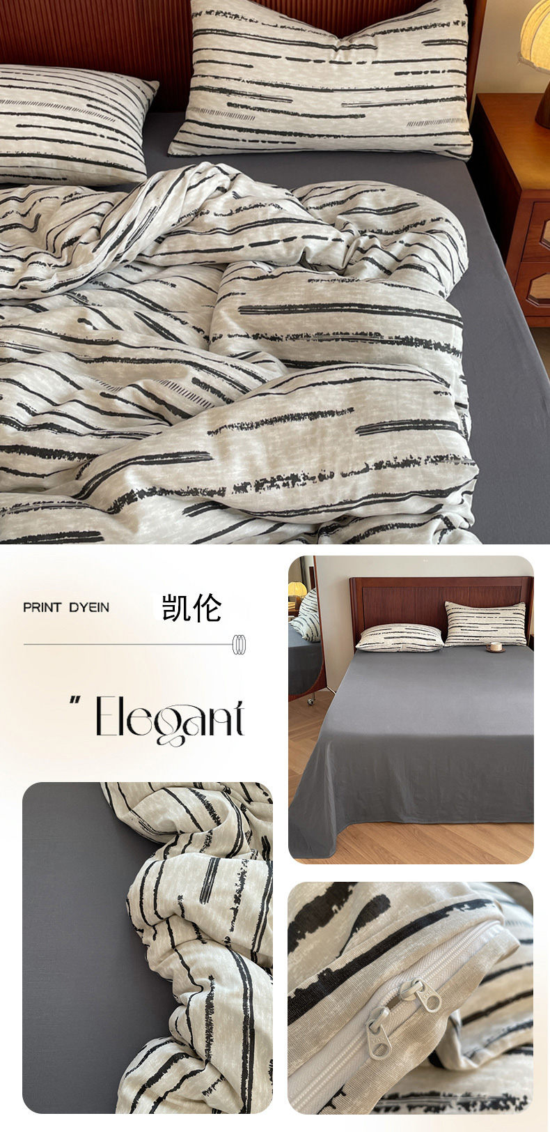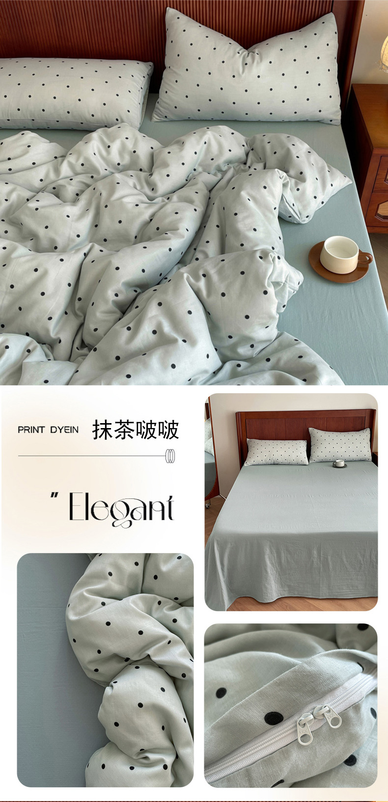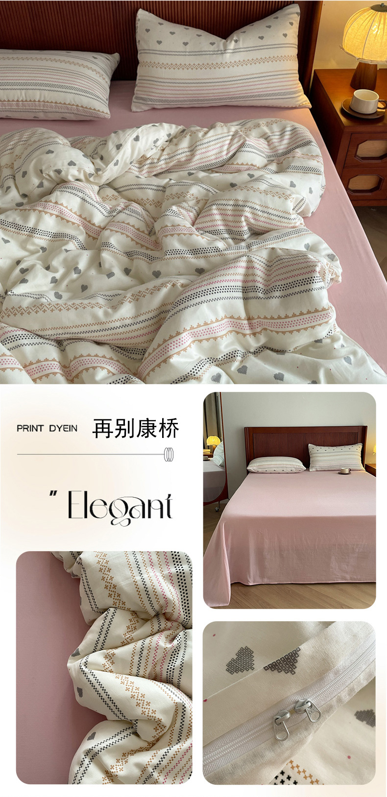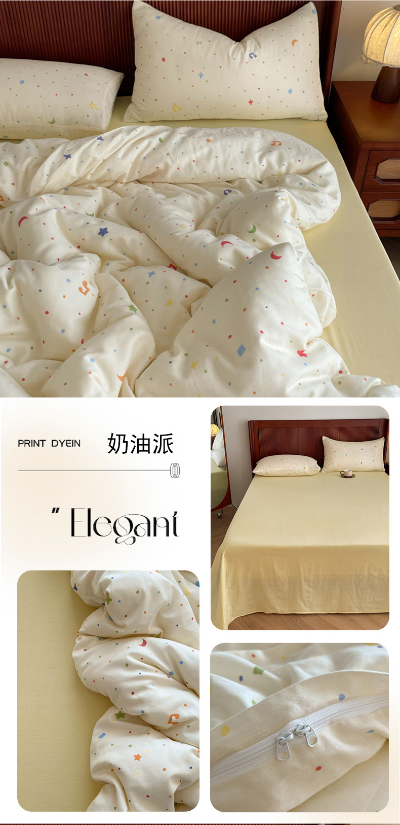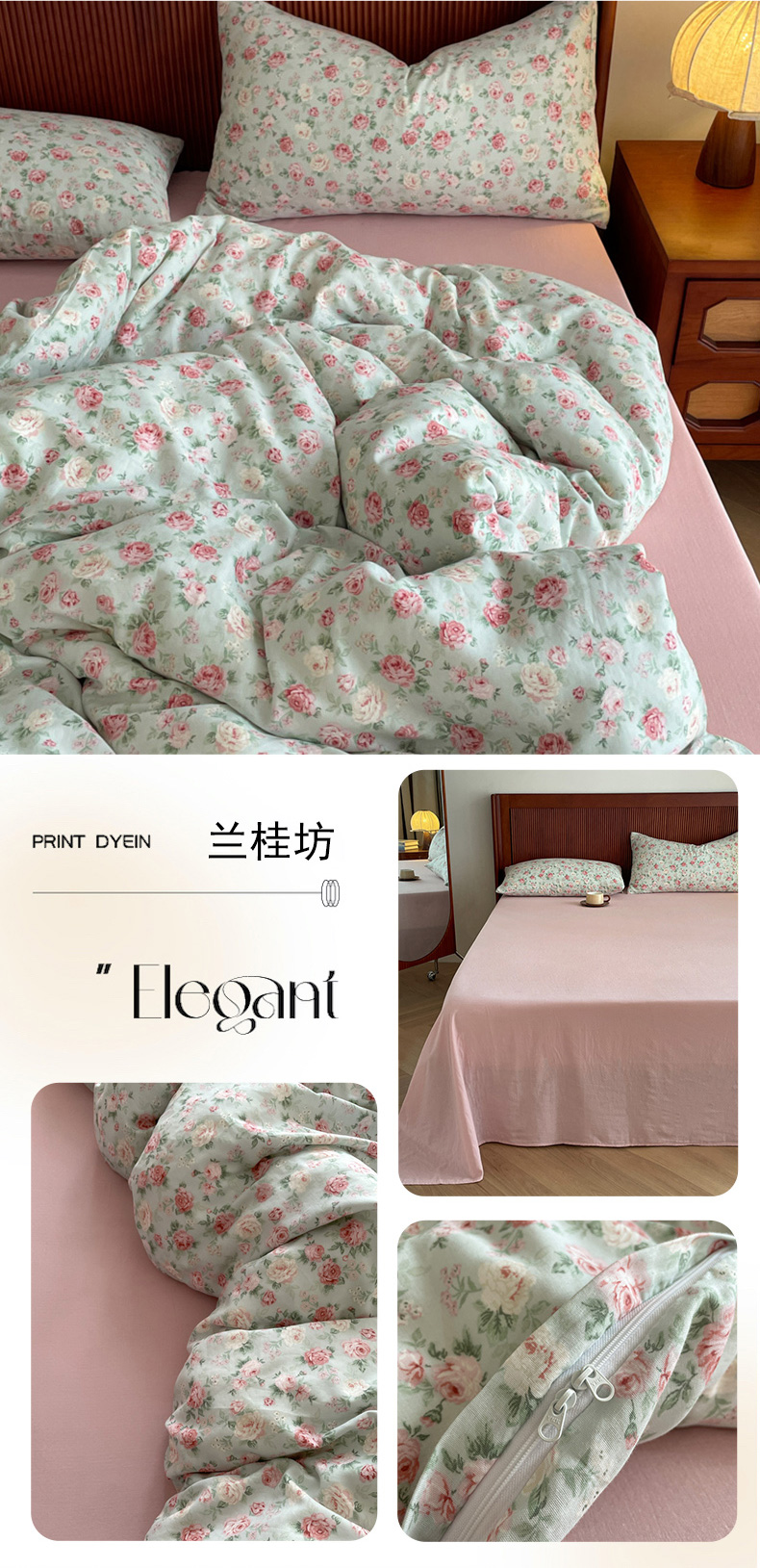 商品名称:典曼家纺 2025新款A类母婴级抗菌有氧双层纱亲肤小清新印花三件套四件套 可心咖