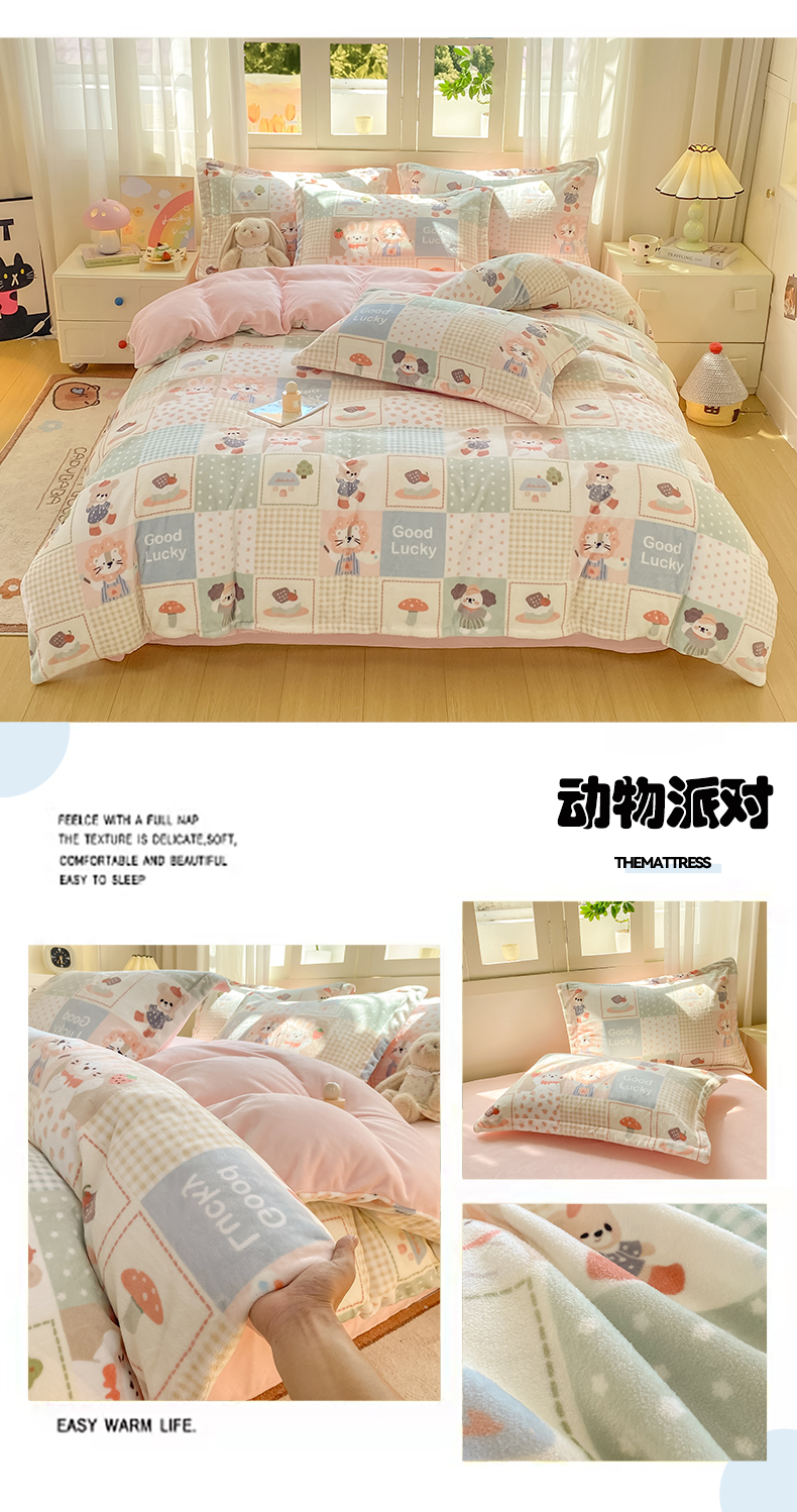 (总)红日子纺织品 2025新款高克重牛奶绒印花四件套,爱情小熊,德尔慧,动物派对,花儿与龙,花海,卡皮巴拉,可爱草莓,缤纷乐园,快乐小狗,拉咕咕,腊肠狗,露营狗,漫天繁星,三小只,幸运樱桃,熊可可,樱桃猫,字母熊
