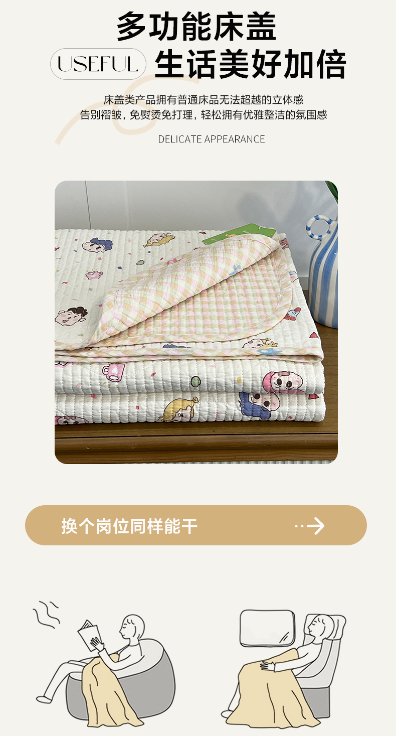 商品名称:沐纯家居 2025新款跑量款双面纯棉印花水洗床盖 动漫小人