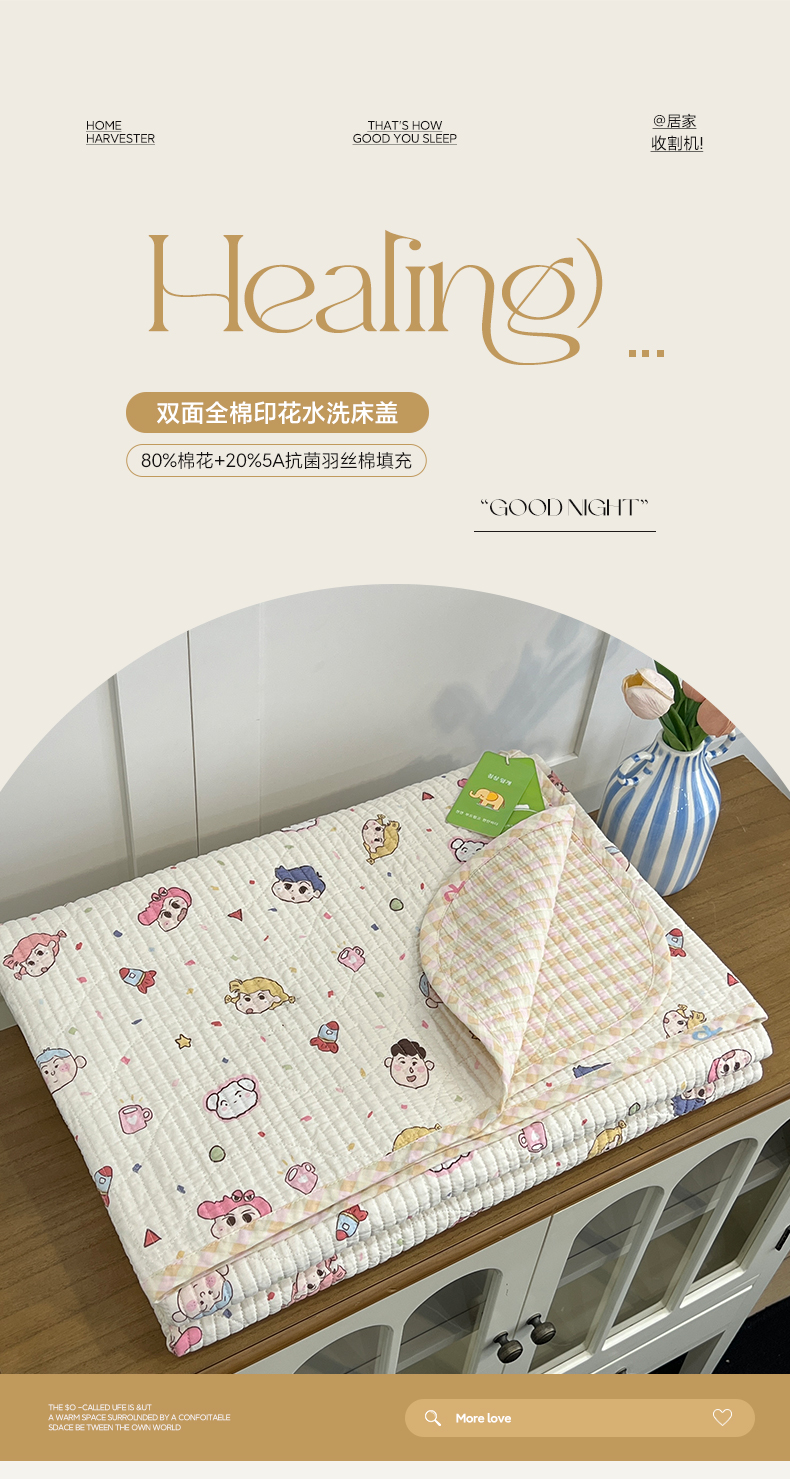 沐纯家居 2025新款跑量款双面纯棉印花水洗床盖 动漫小人