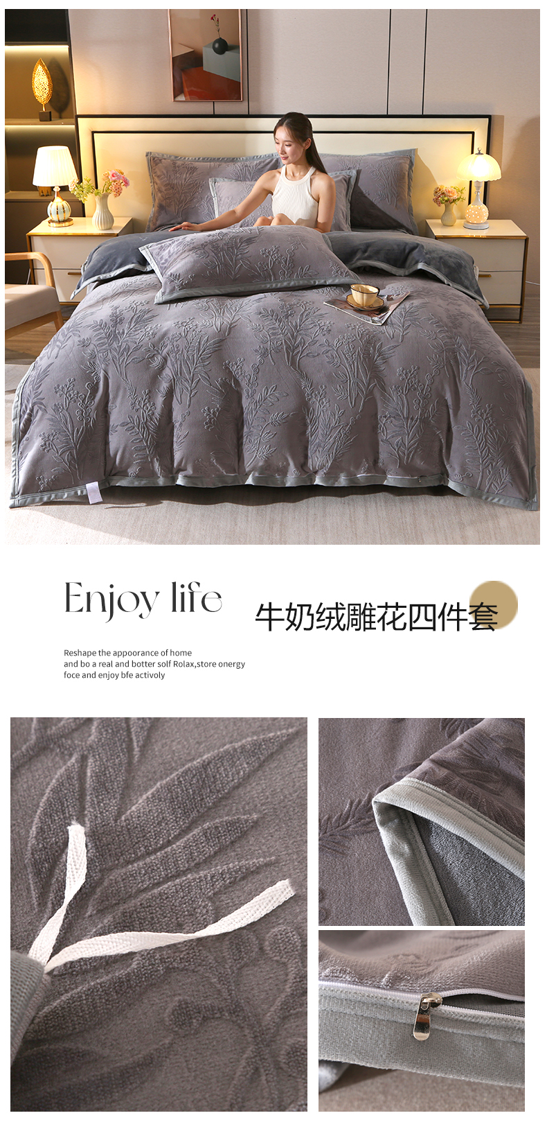 当前位置: 91家纺网 > 商品网购 > 床品套件 > 四件套 > 牛奶绒四件套 > 小叮当家纺仓储工厂店 2025新款A类母婴级高克重8.5斤牛奶绒四件套烂花绒雕花绒四件套 玫瑰-浅蓝