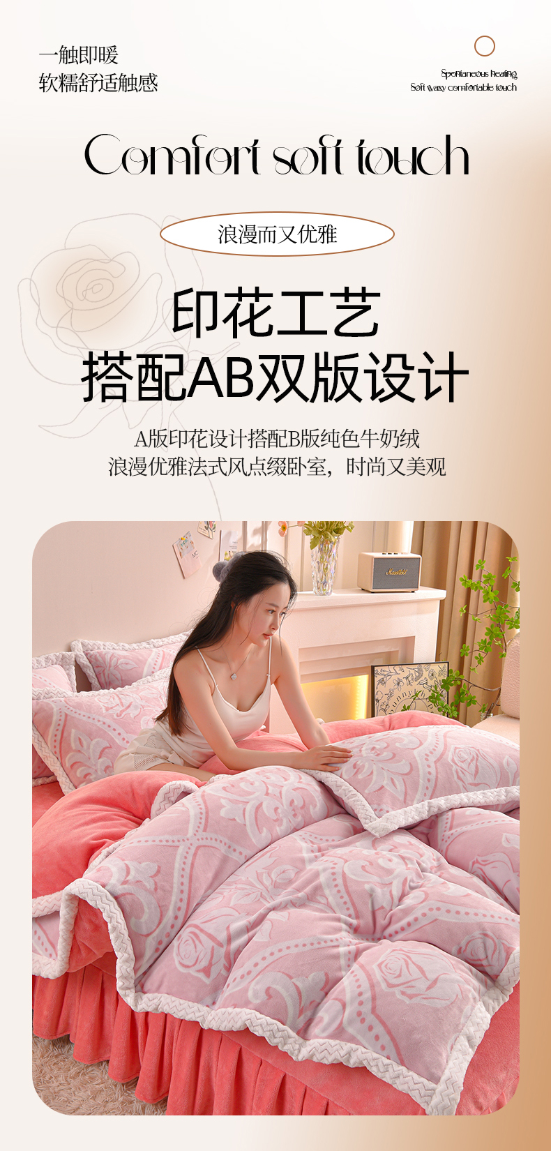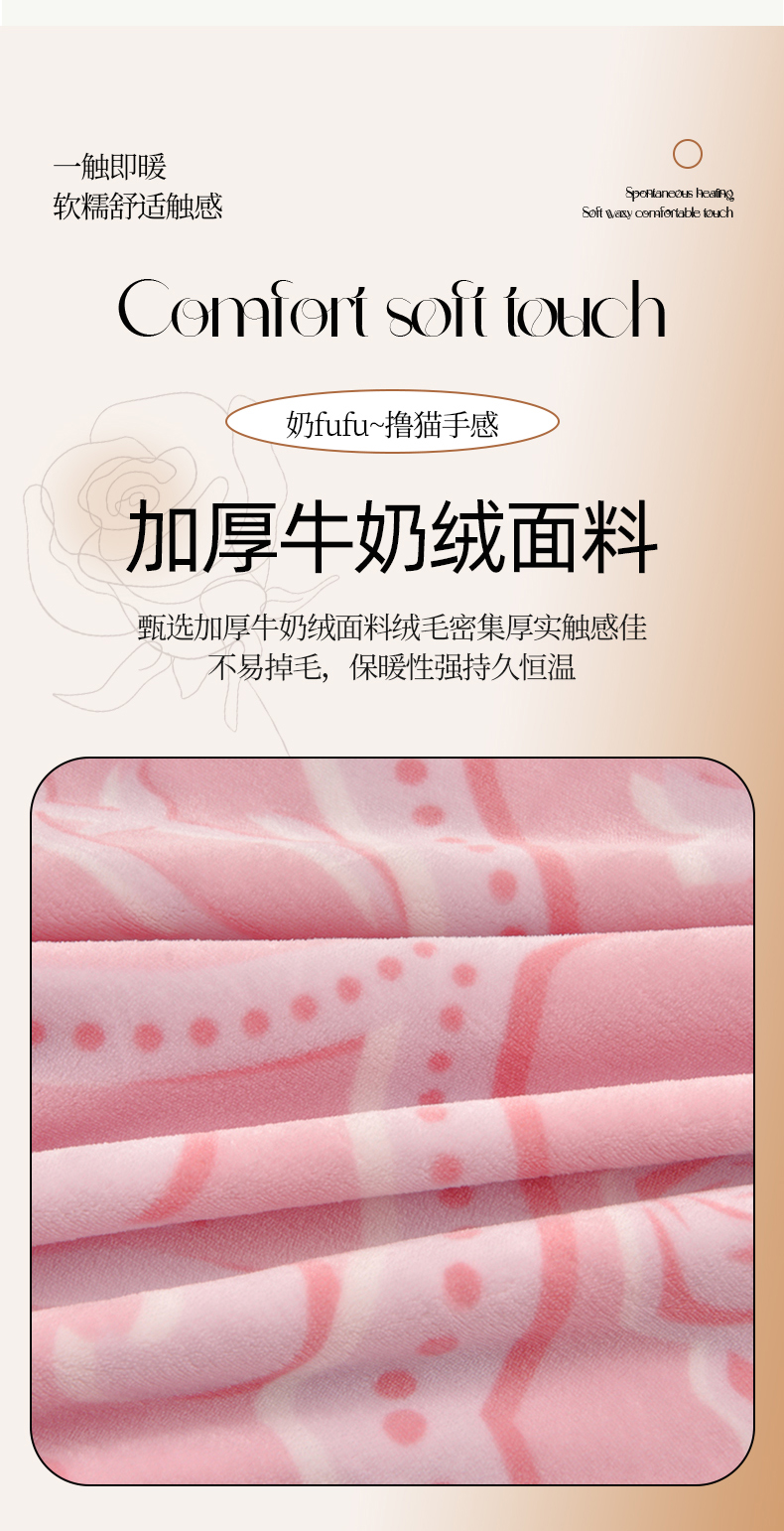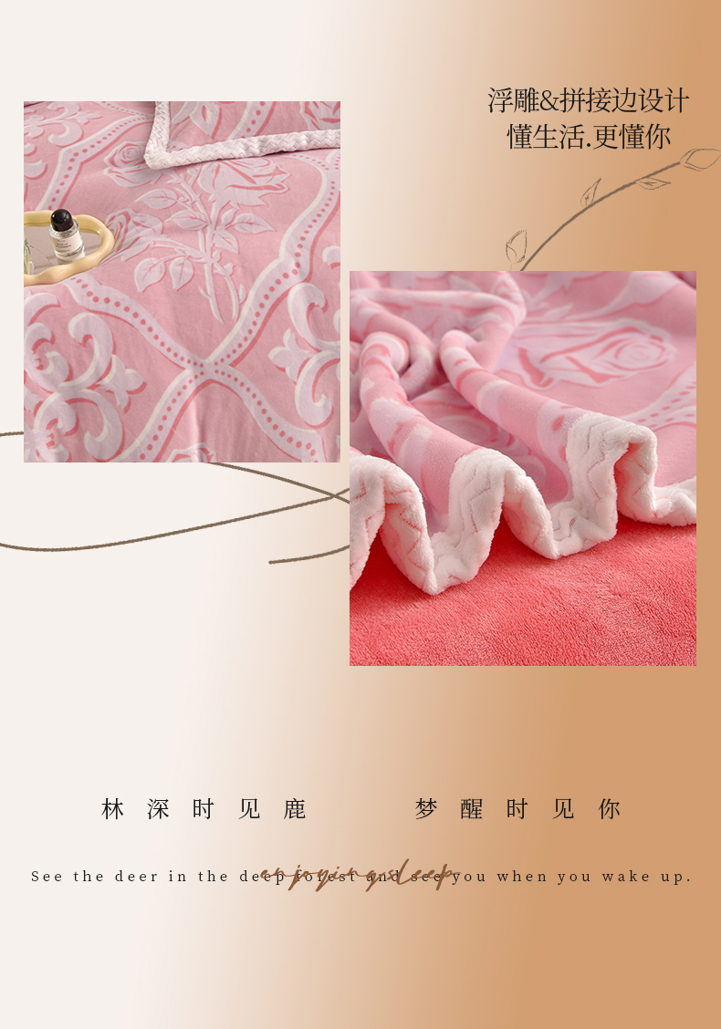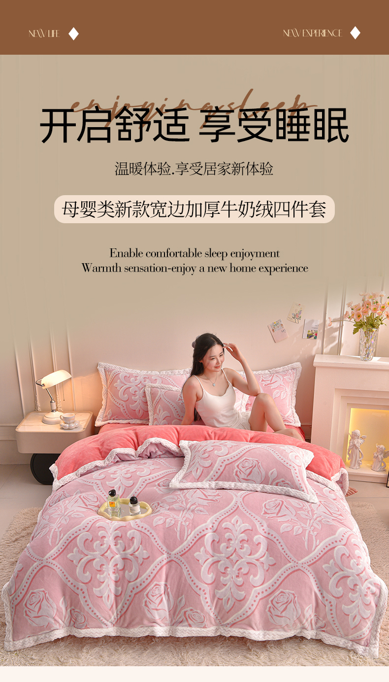董成龙家纺 2025新款直播爆款牛奶绒四件套雕花压线款法莱绒四件套11 欧雅-粉