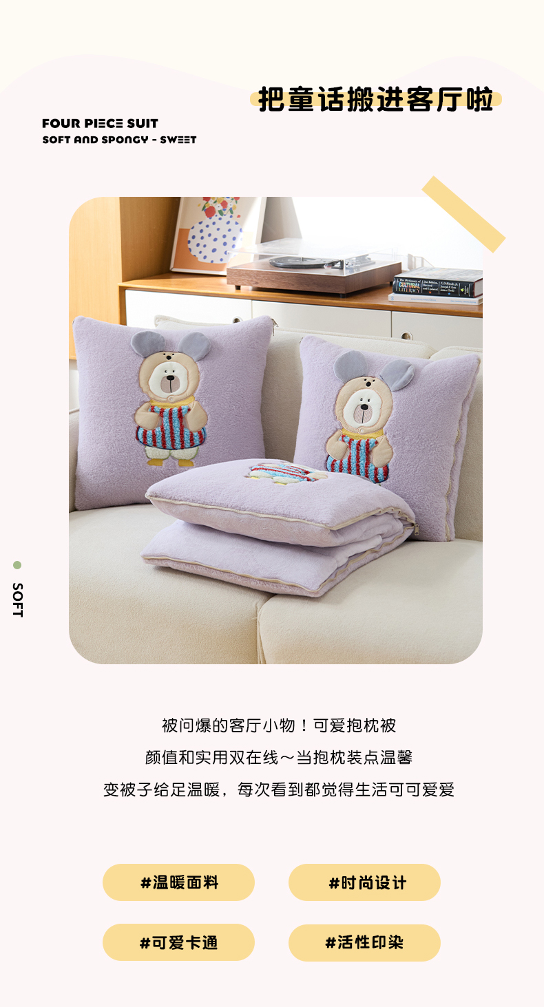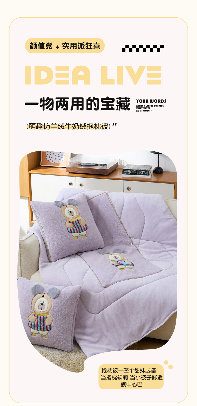 (总)金喜 2025新款高克重牛奶绒贴布卡通抱枕沙发靠枕午睡盖毯被绣萌趣男孩momo款,组合图仅供参考不可下单,秋波蓝,香芋紫,艾青绿,鸽子灰,蔷薇粉