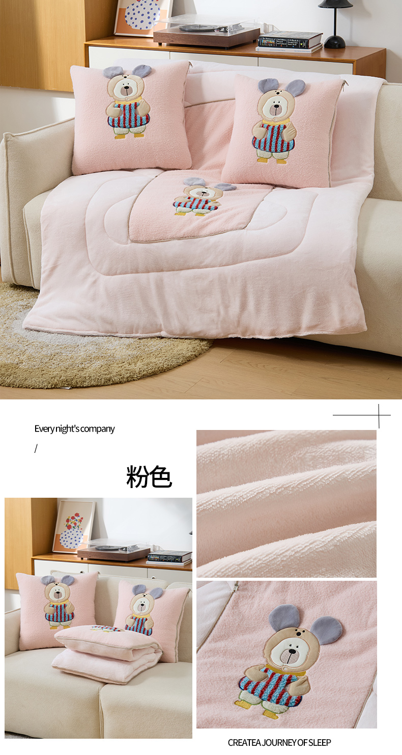 (总)金喜 2025新款牛奶绒抱枕被大耳朵熊牛奶绒多功能抱枕被汽车靠枕沙发靠枕,多巴胺熊-粉色,多巴胺熊-灰色,多巴胺熊-蓝色,多巴胺熊-绿色,多巴胺熊-紫色,组合图仅供参考不可下单