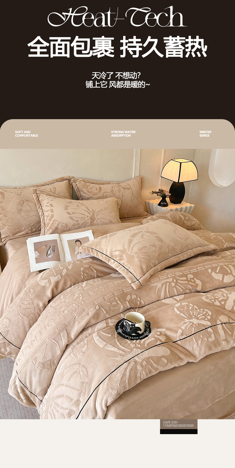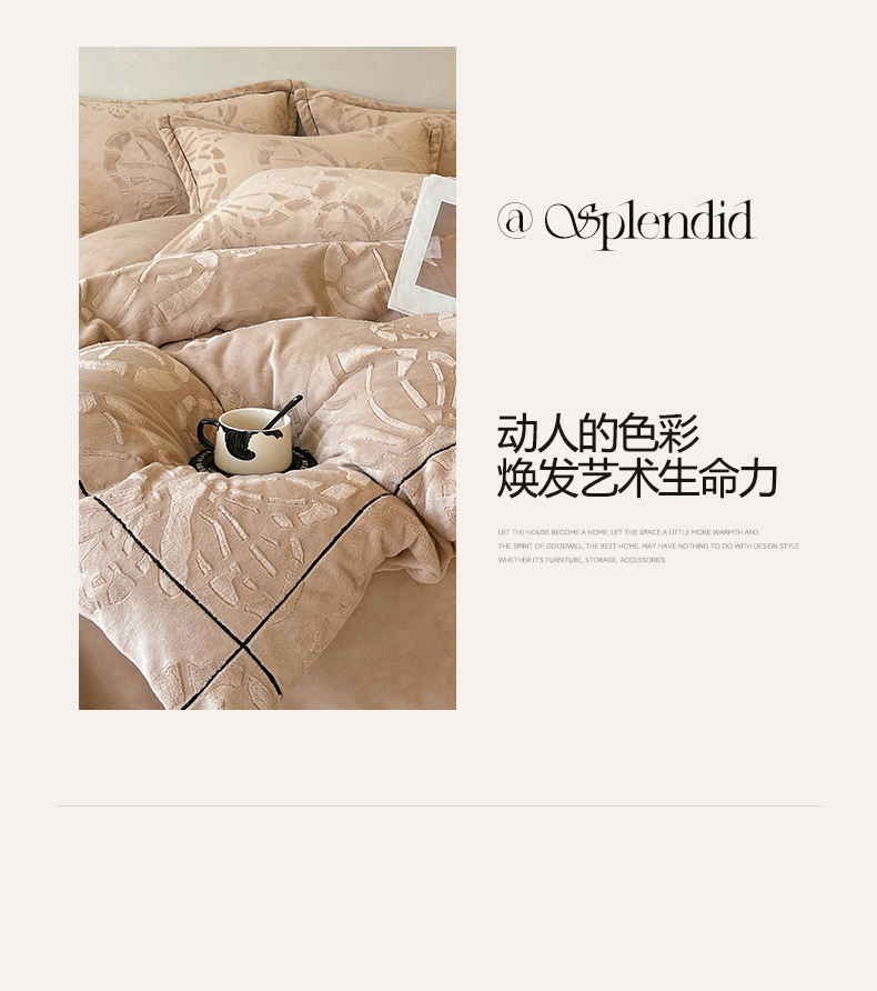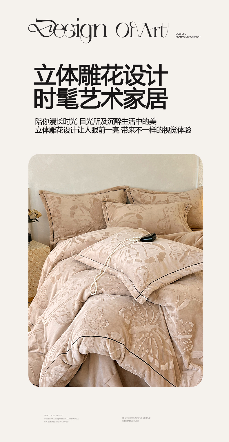 锦彩家居 2025新款高克重牛奶绒雕花四件套-蝶梦 蝶梦-可可棕