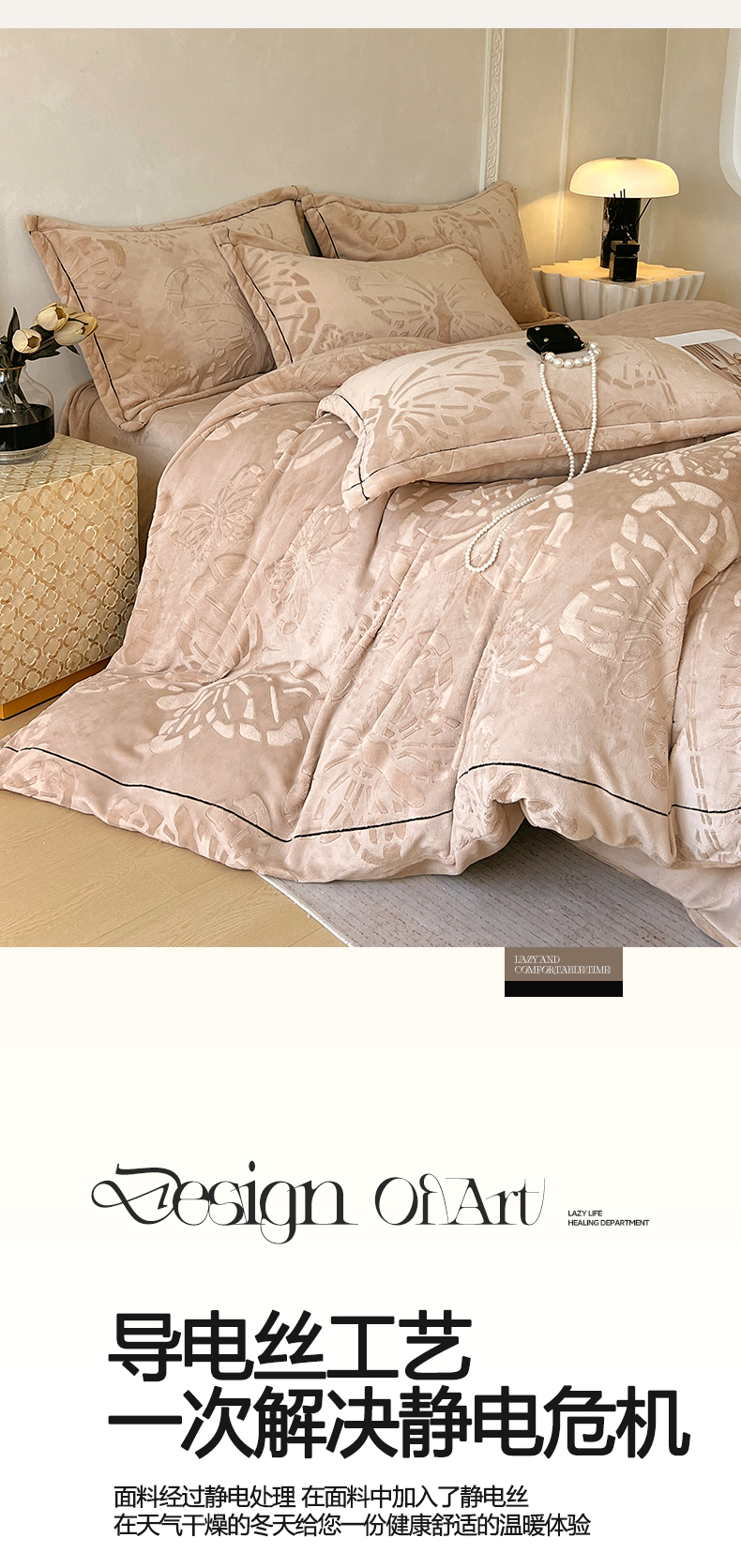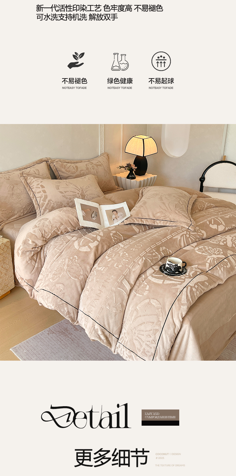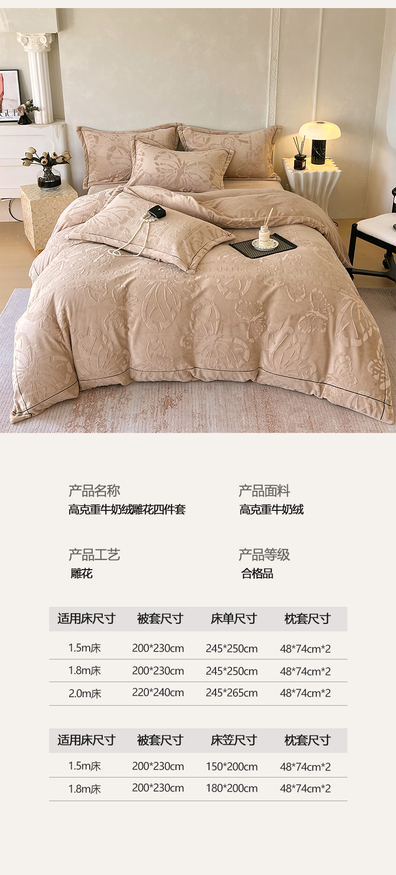 商品名称:锦彩家居 2025新款高克重牛奶绒雕花四件套-蝶梦 蝶梦-可可棕