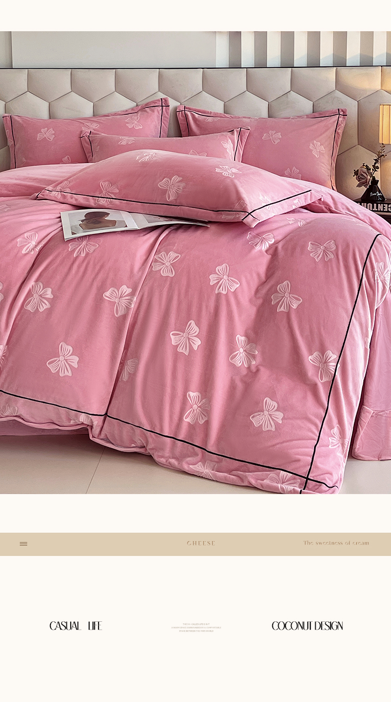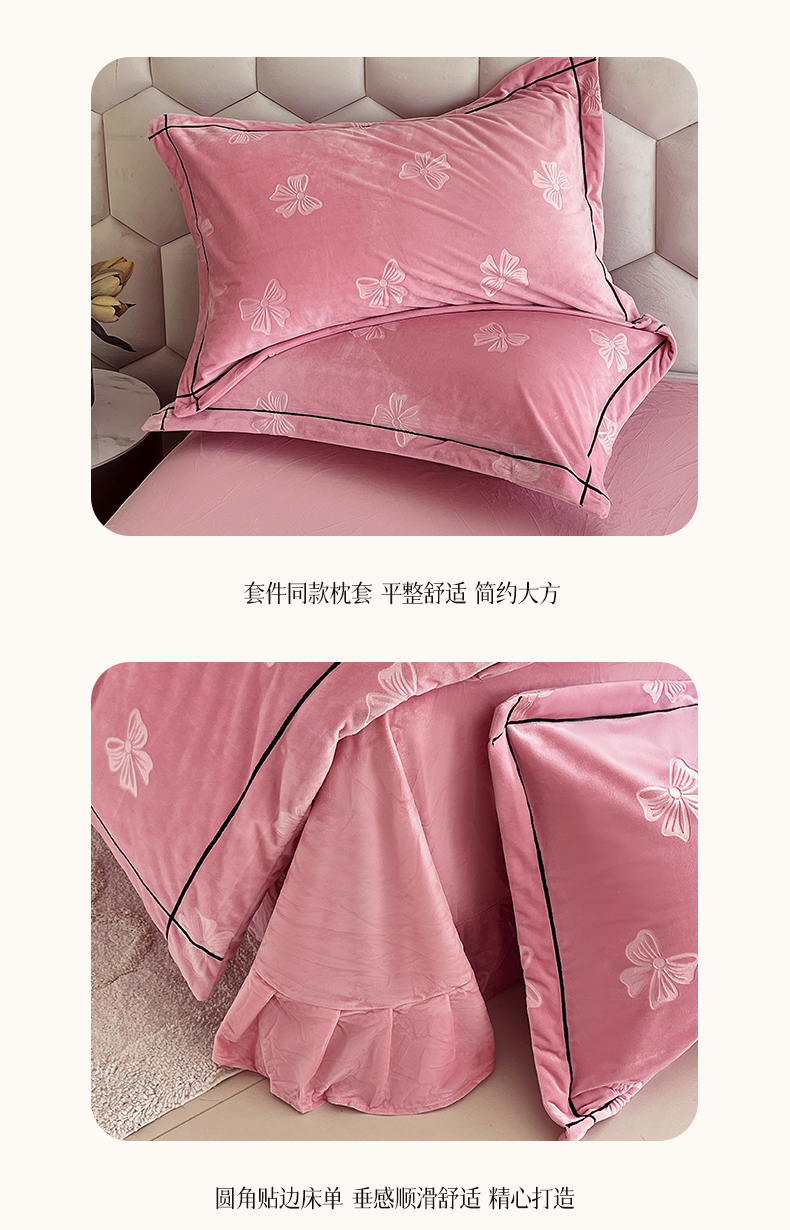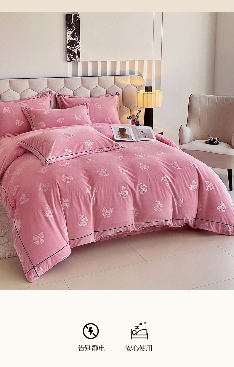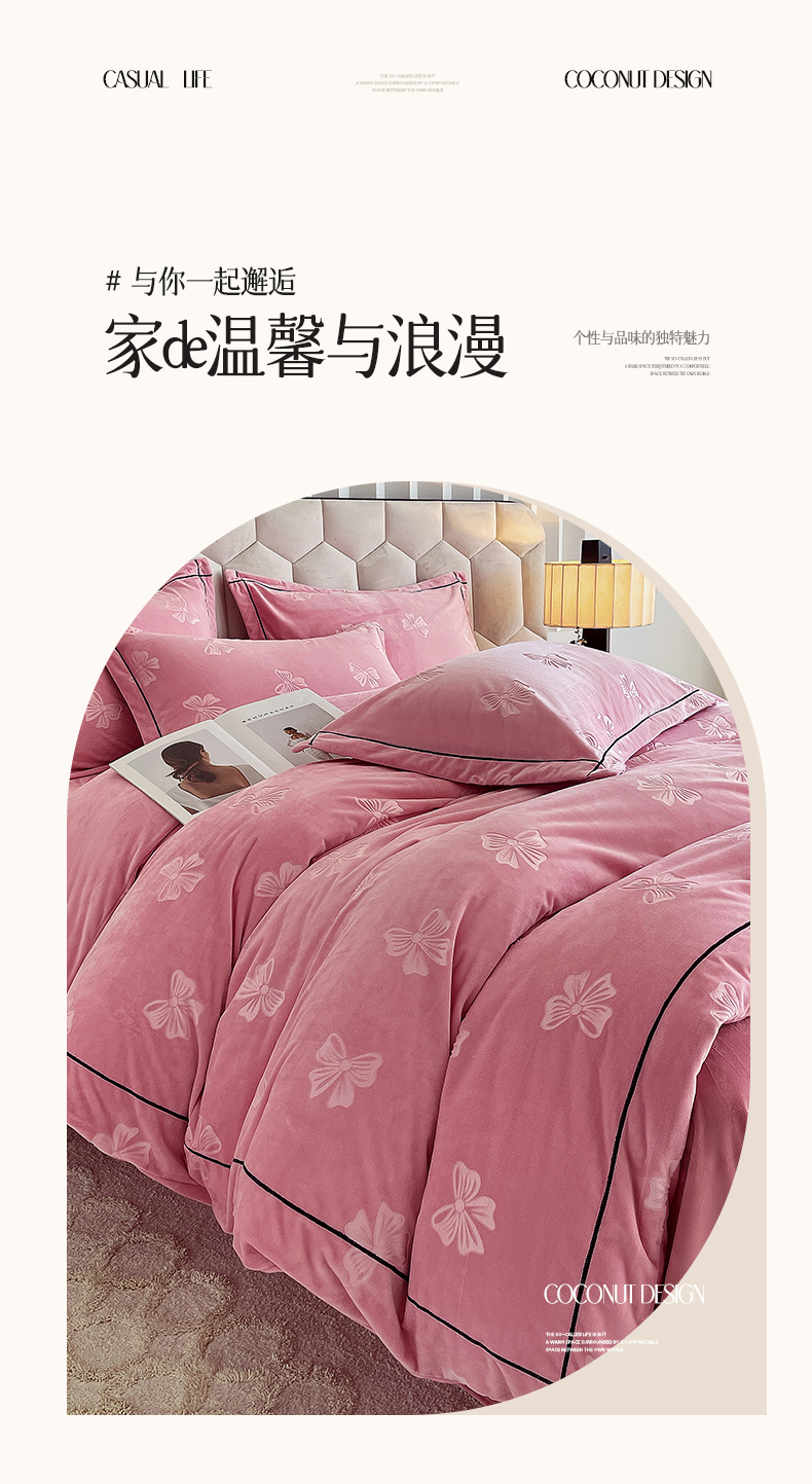 商品名称:锦彩家居 2025新款高克重牛奶绒婴儿绒雕花四件套-暮光花园 暮光花园-苏梅粉