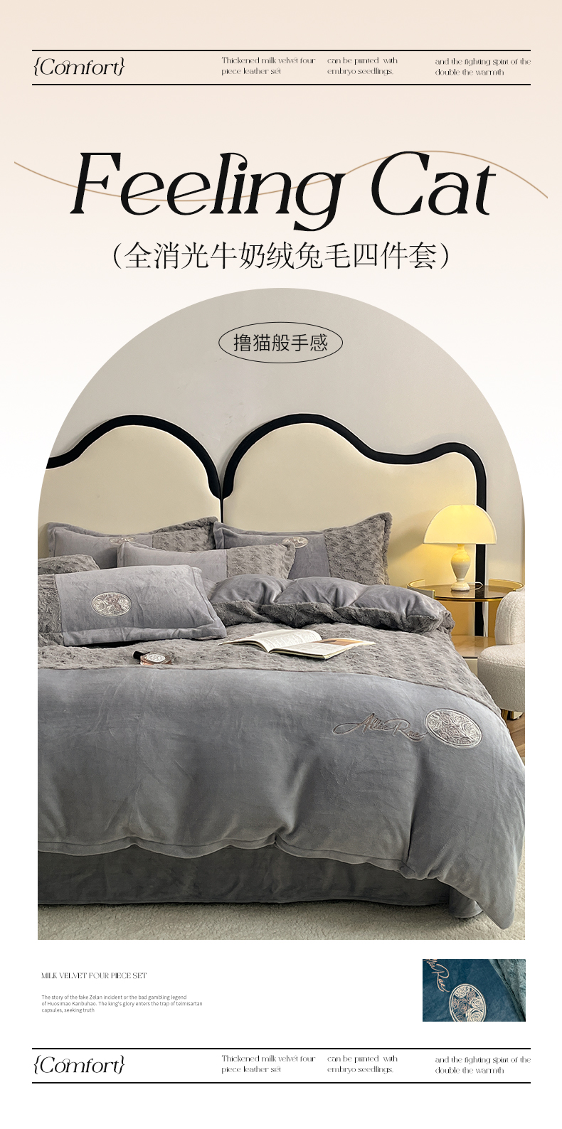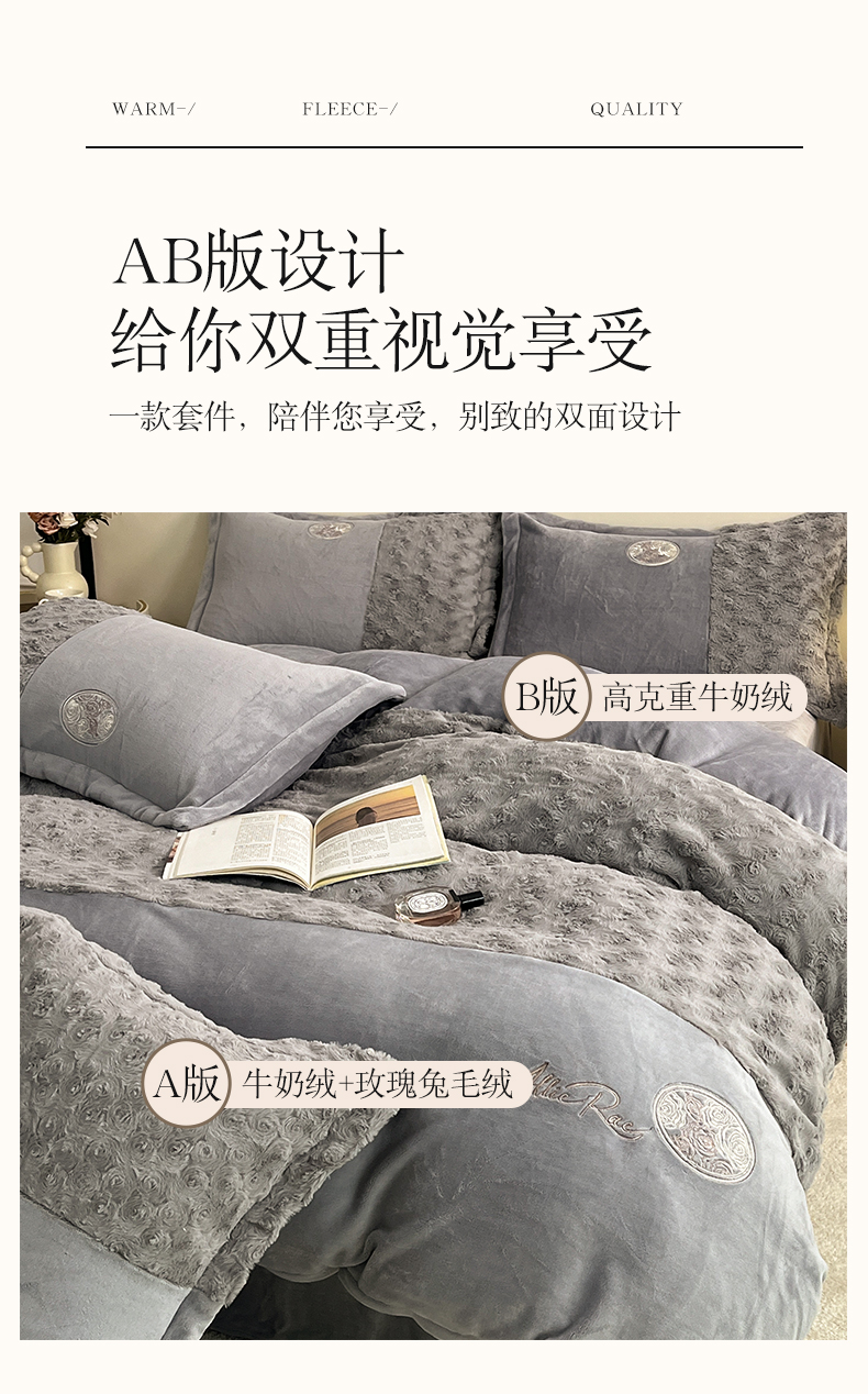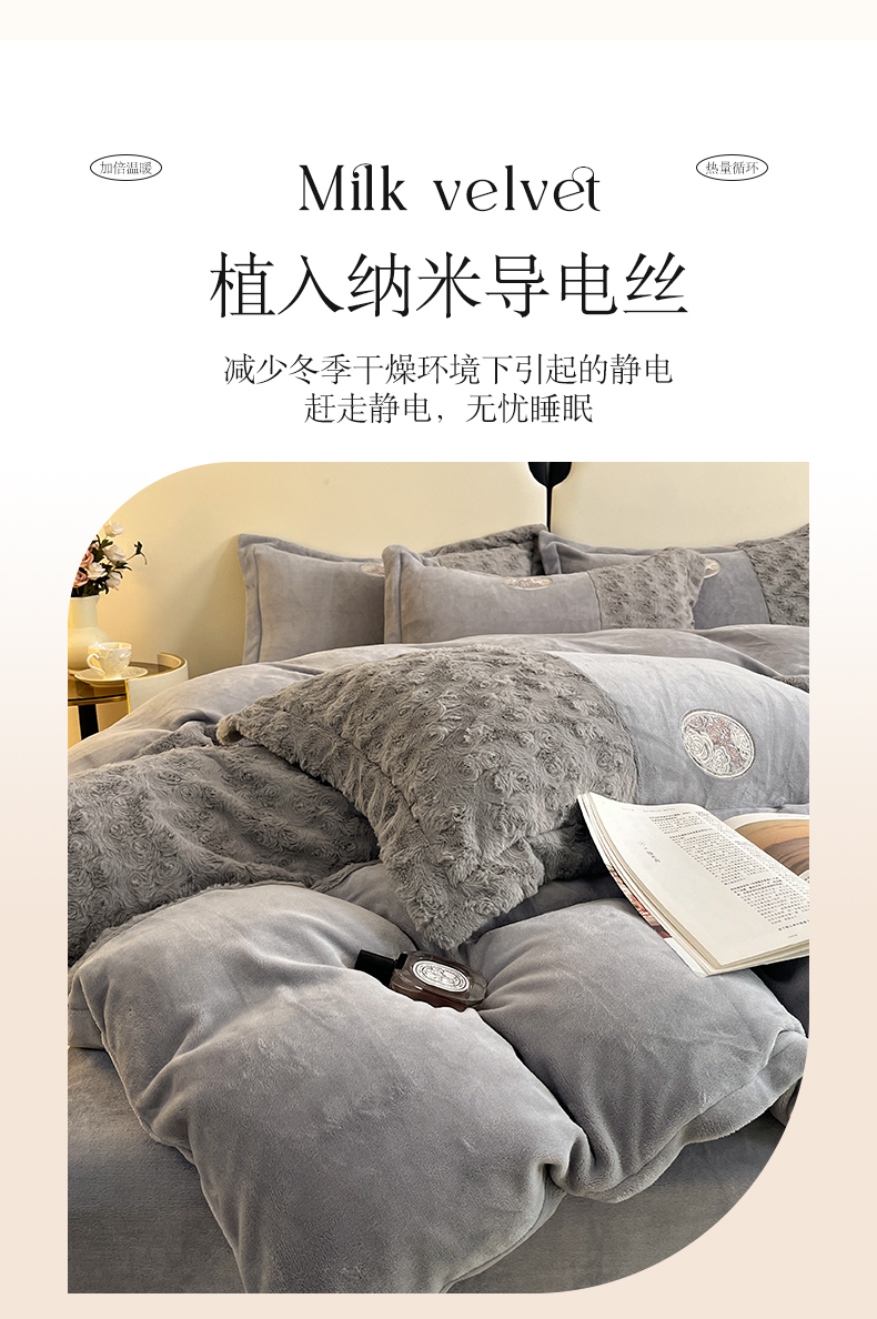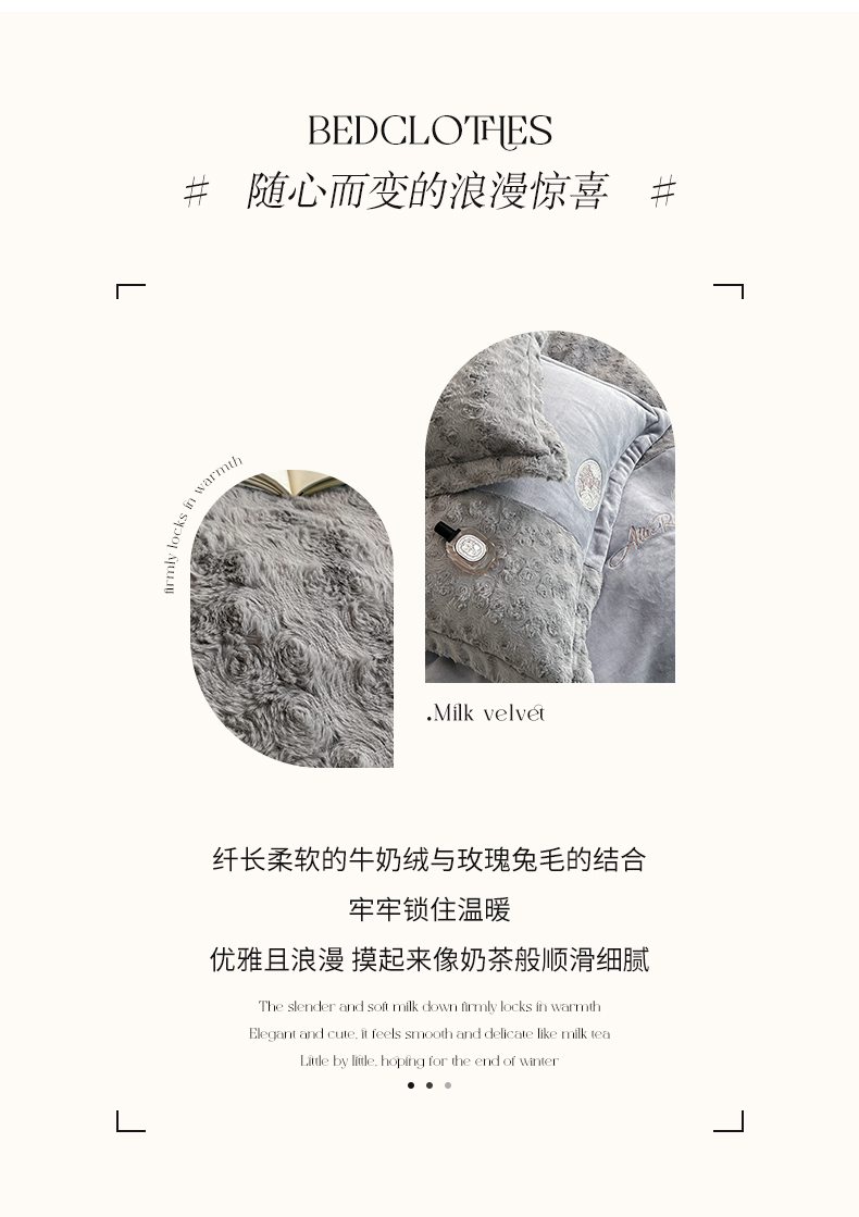 商品名称:梓之赫 2025新款全消光牛奶绒四件套-浪漫玫瑰 浪漫玫瑰-高级灰