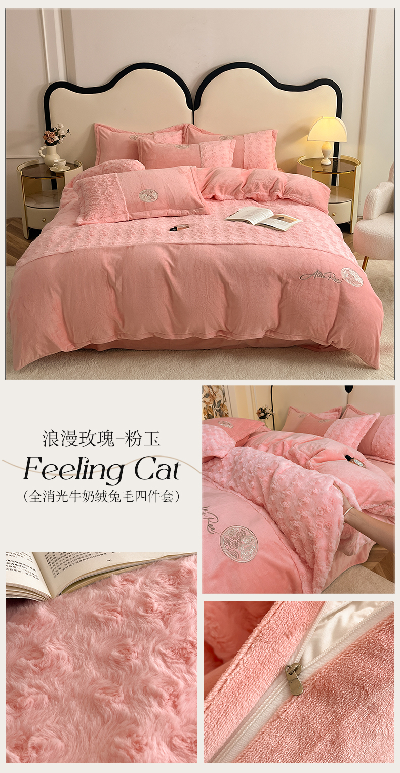梓之赫 2025新款全消光牛奶绒四件套-浪漫玫瑰 浪漫玫瑰-高级灰