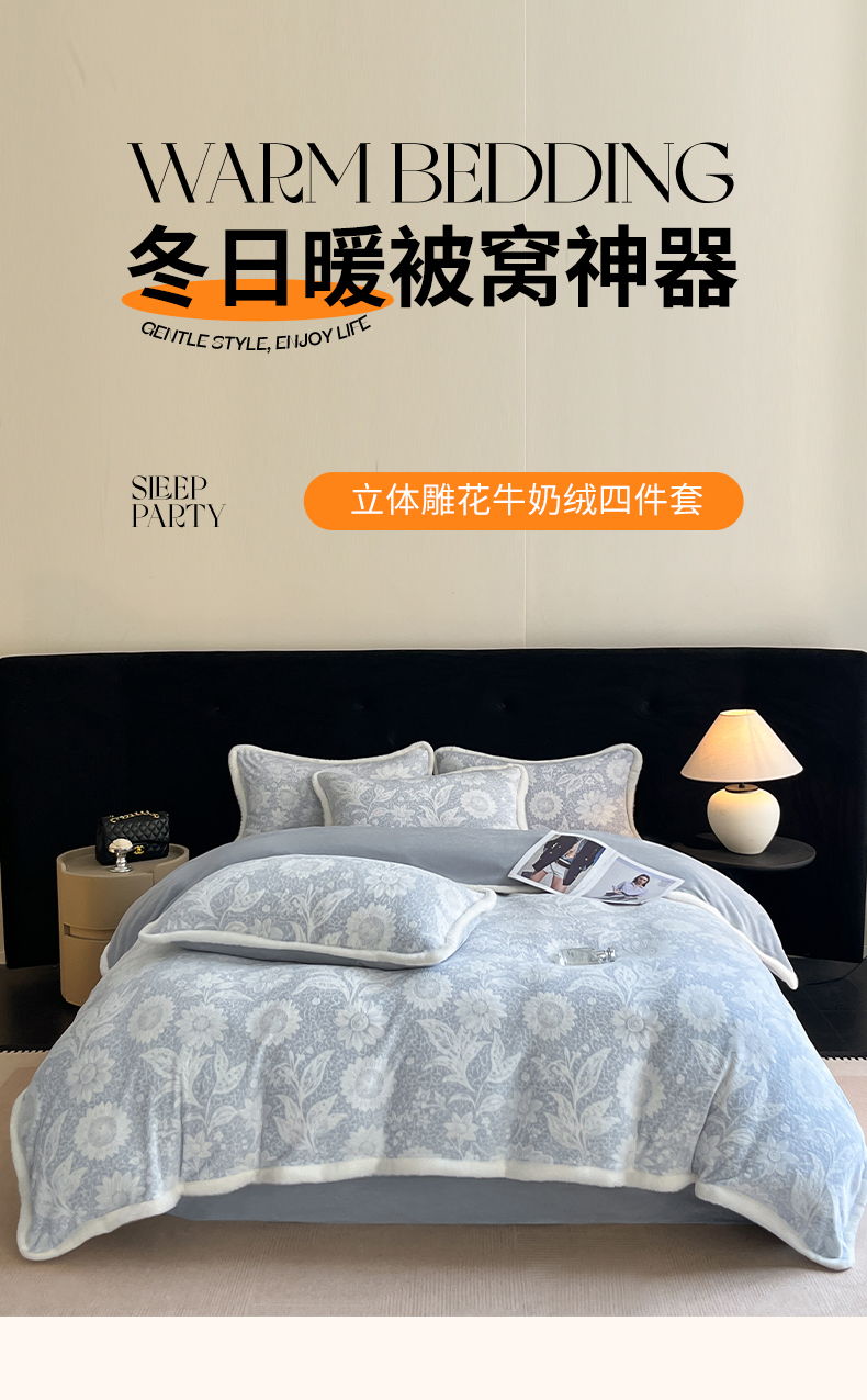 (总)极简 2025新款立体雕花牛奶绒四件套系列