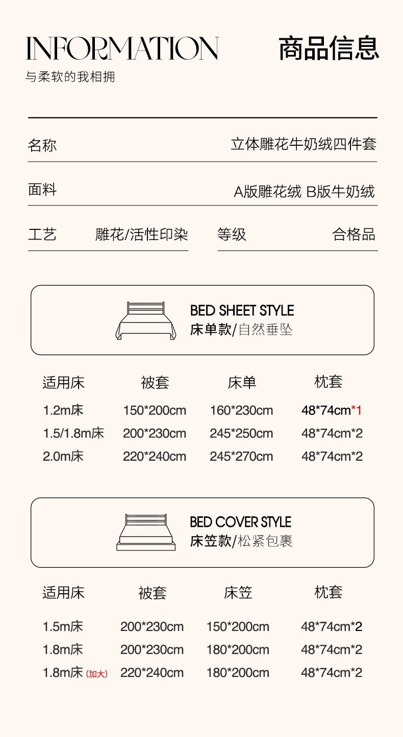 商品名称:(总)极简 2025新款立体雕花牛奶绒四件套系列