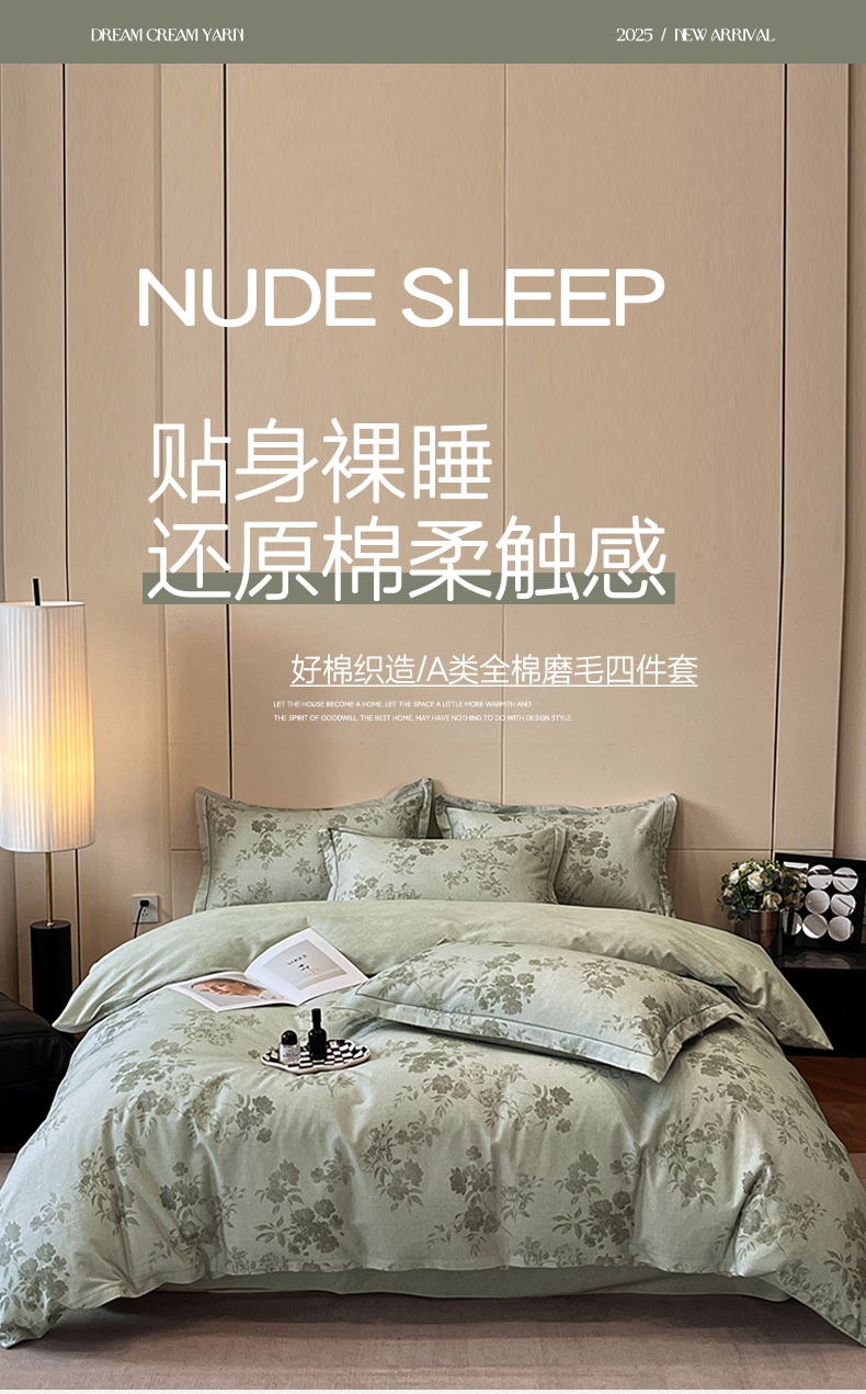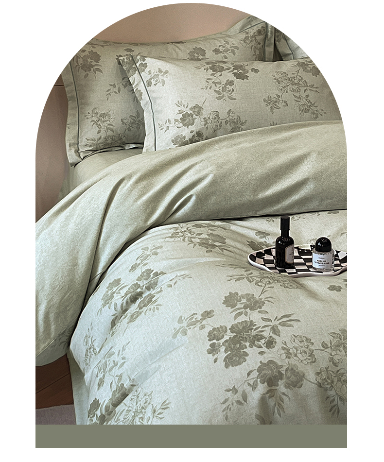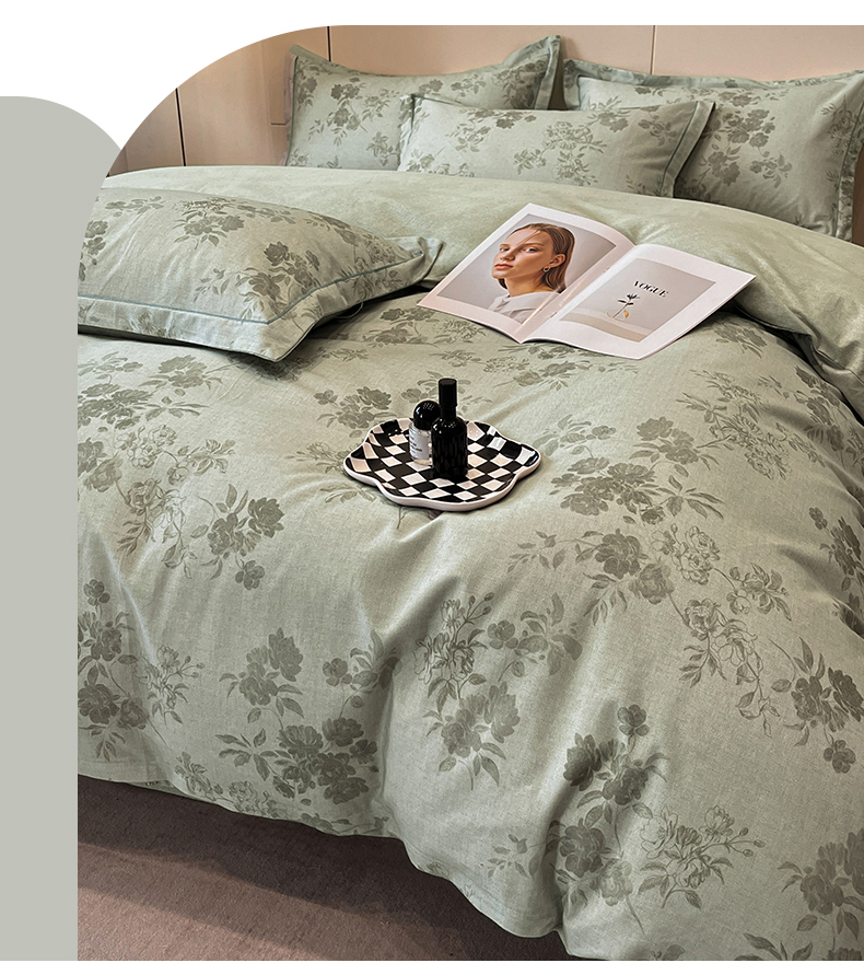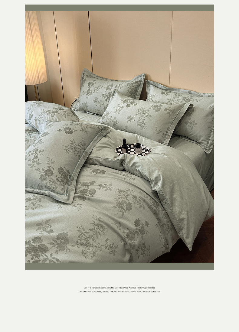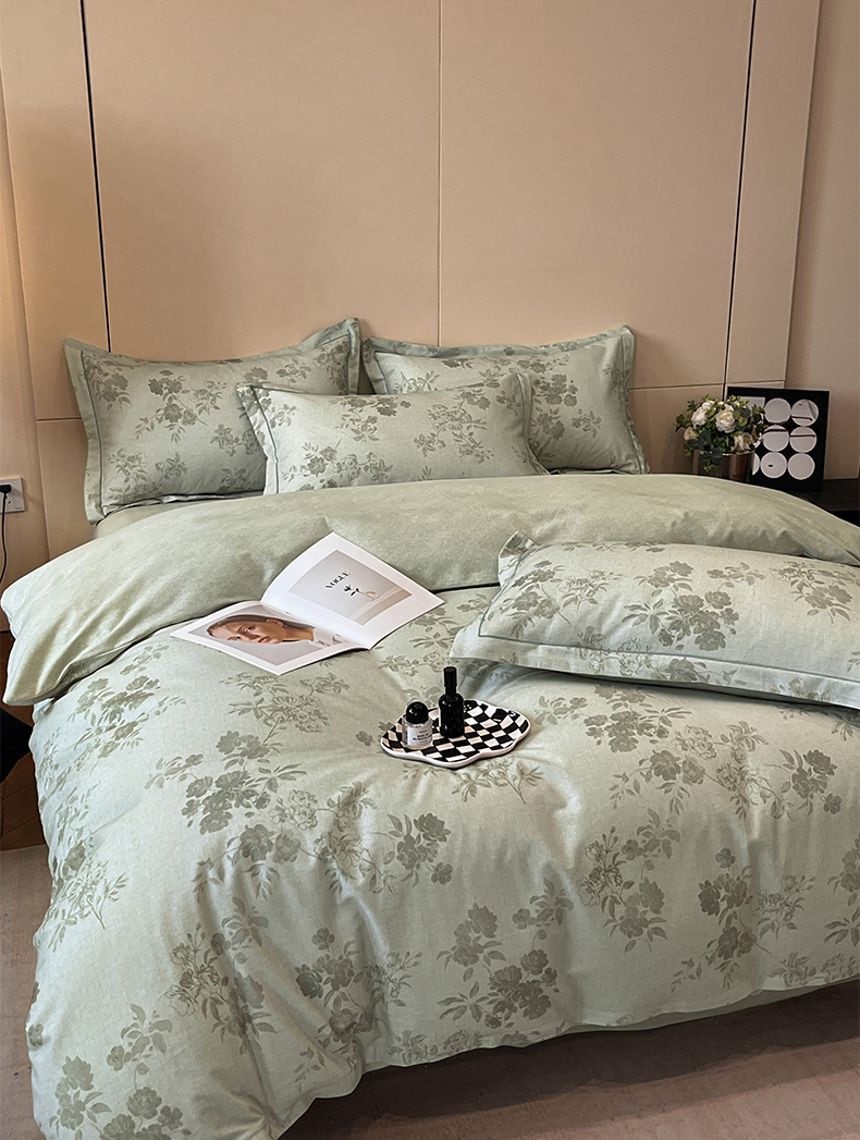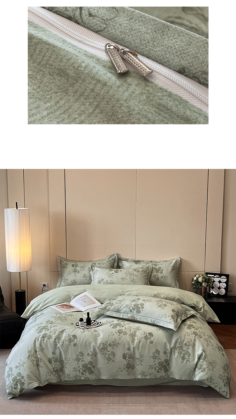 简如 2025新款100%全棉纯棉磨毛四件套(有买家秀) 花庭悦舞-绿